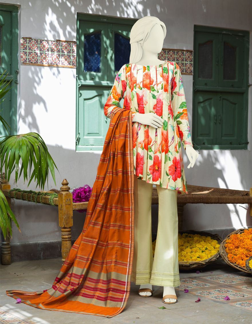 LIGHT YELLOW LAWN 3PC UNSTITCHED | JLAWN-S-US-21-359 LYOSHA