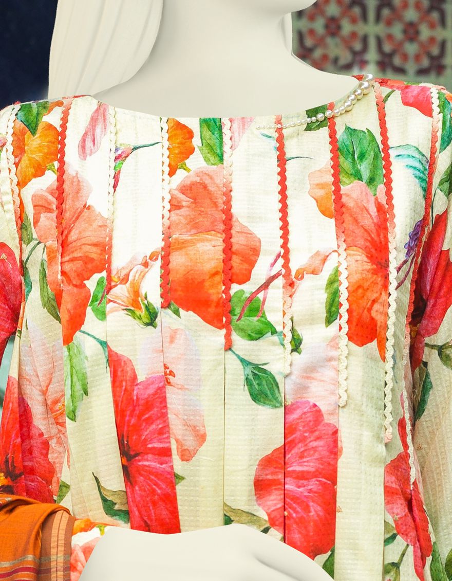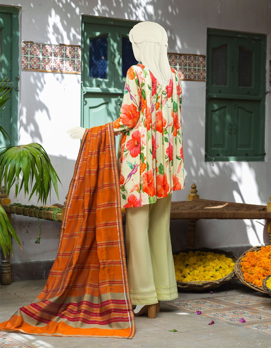 Embroidered Digital Print Dobby Shirt - Dyed Basic Lawn Trouser - Basic Yarn-Dyed Two Toner Dupatta