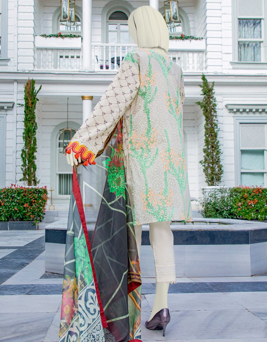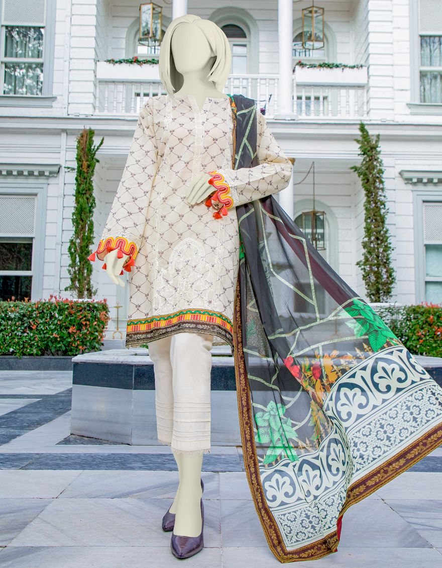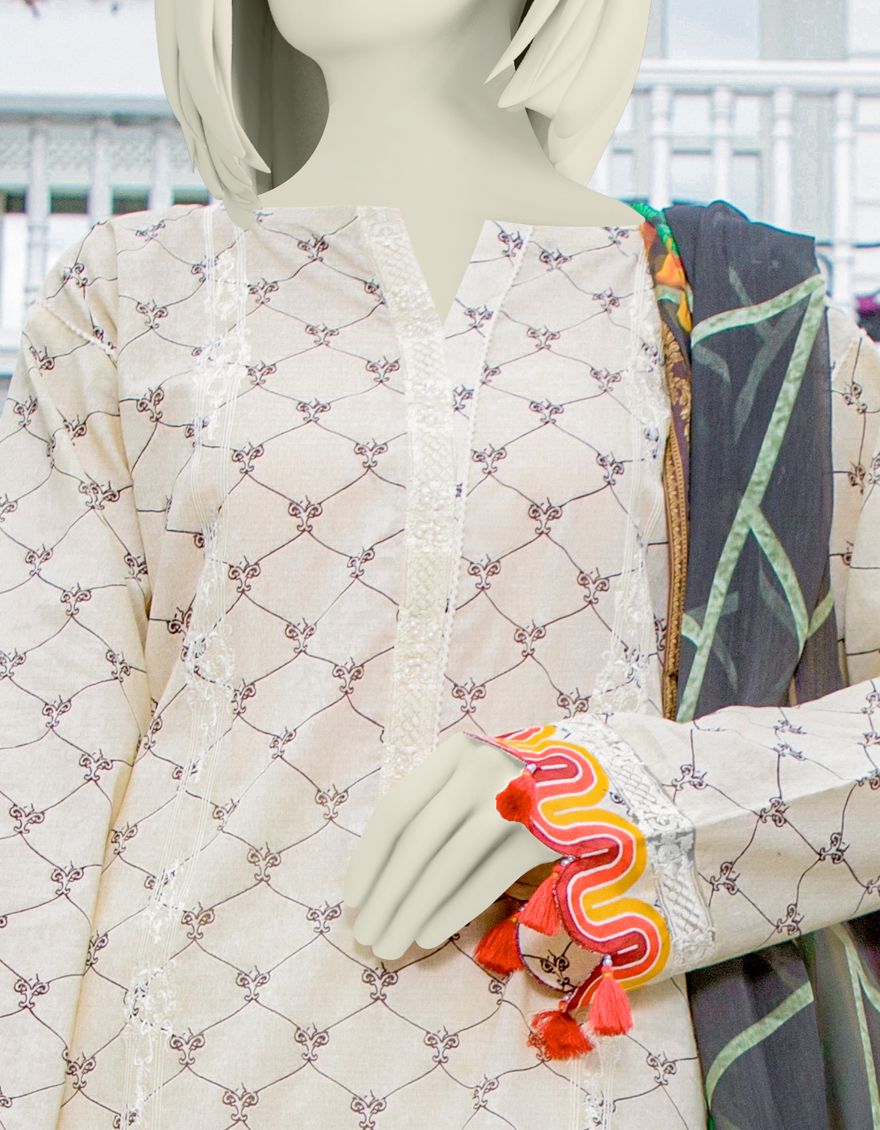 CREAM LAWN 3PC UNSTITCHED | JLAWN-S-US-21-707 BLOCK GRAIN
