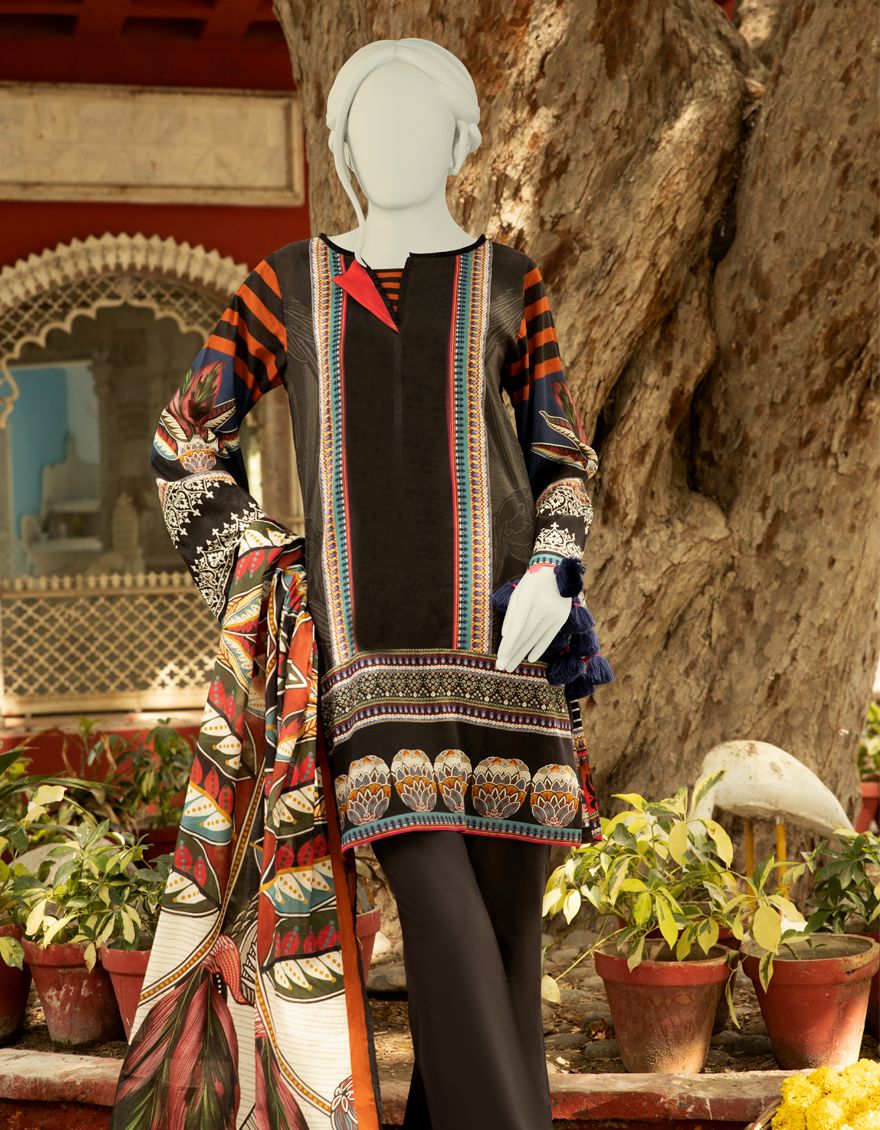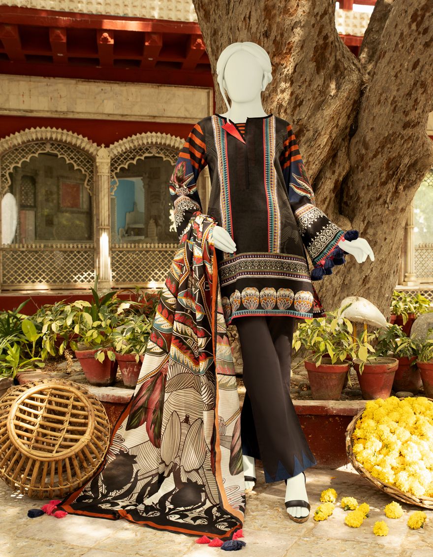 BLACK LAWN 3PC UNSTITCHED | JLAWN-S-US-21-712 RETRO FUSION