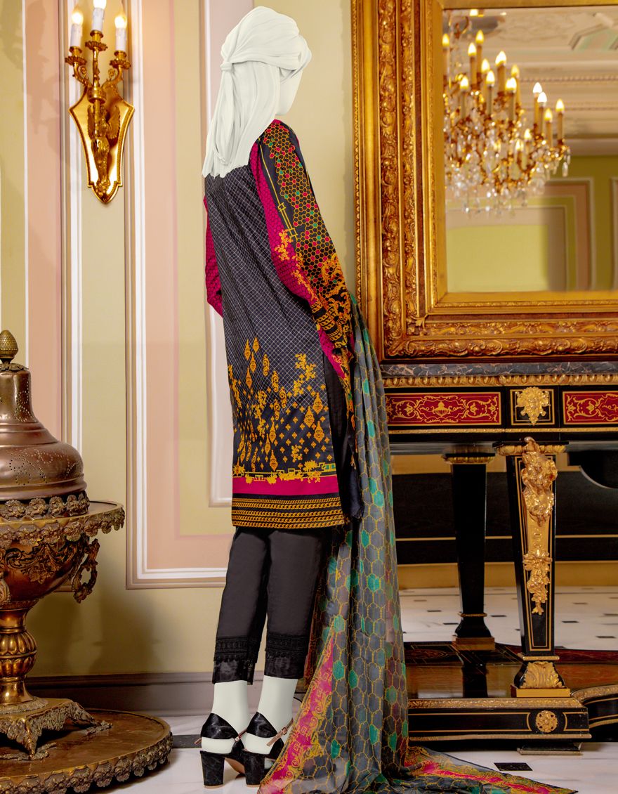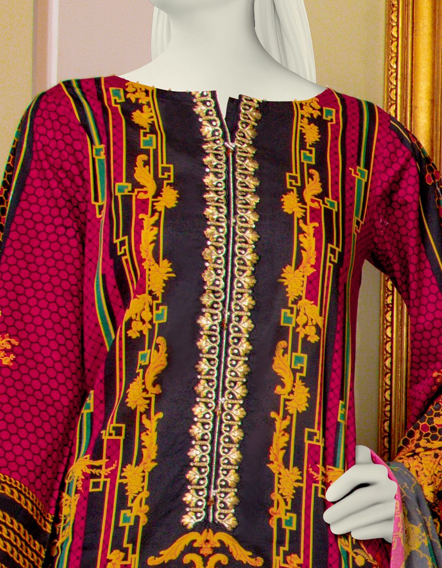 RED-BLACK LAWN 3PC UNSTITCHED | JLAWN-S-US-21-732 BAROQUE