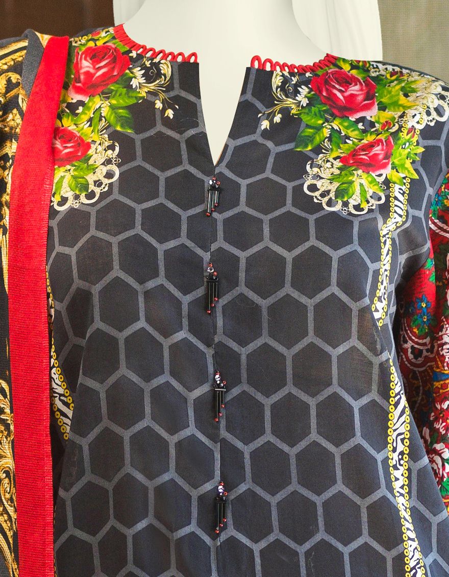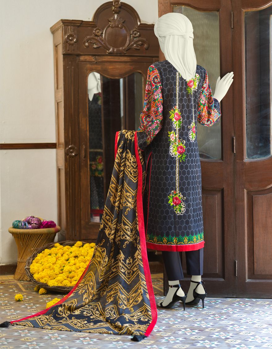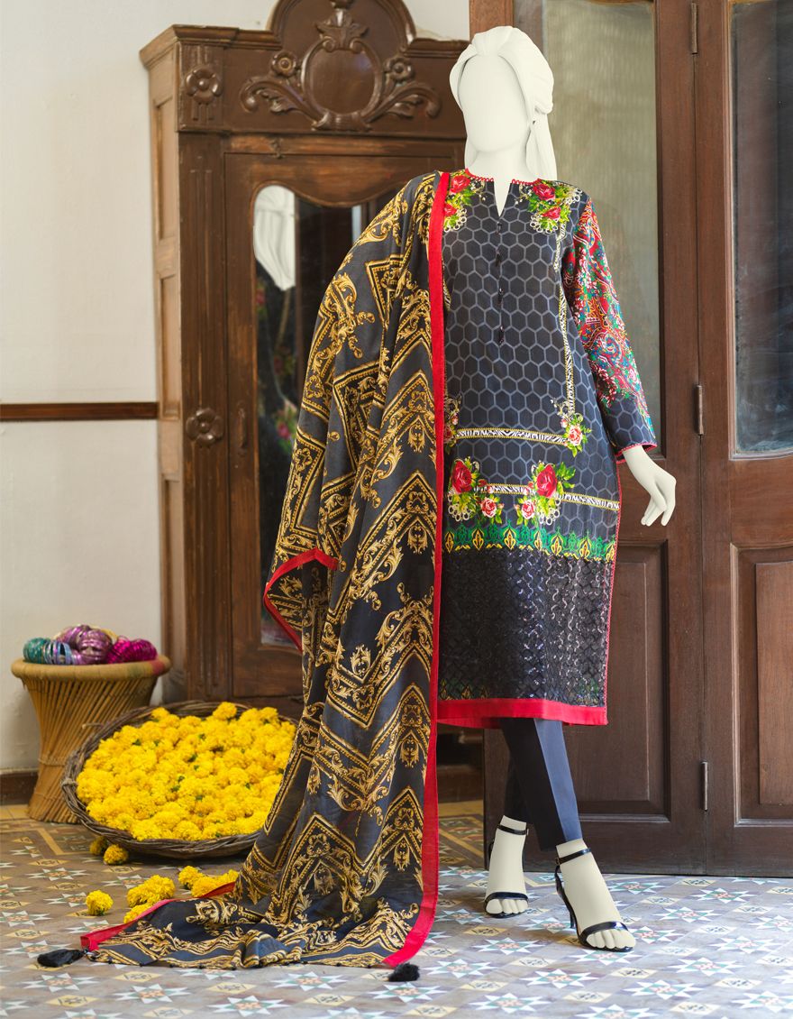 BLACK LAWN 3PC UNSTITCHED | JLAWN-S-US-21-736 DEN