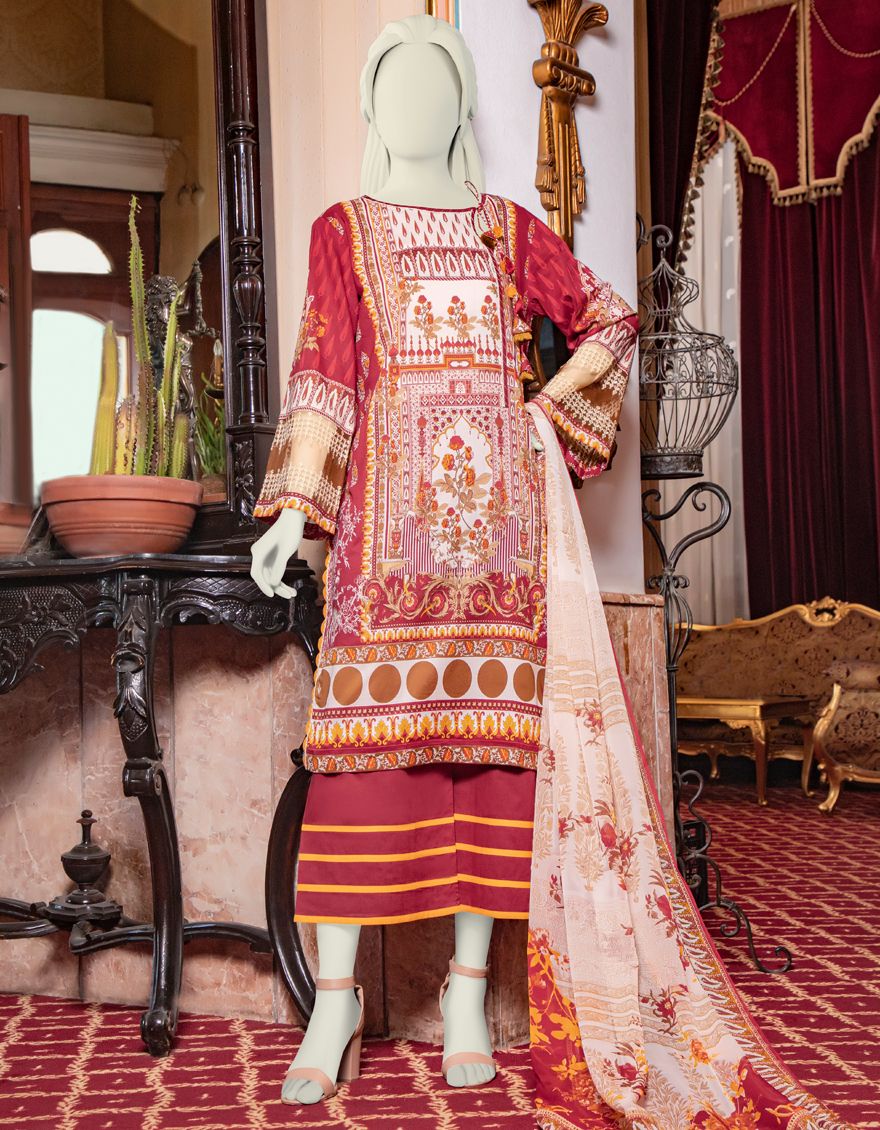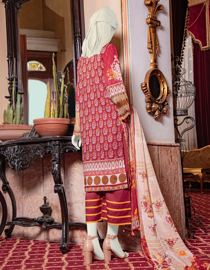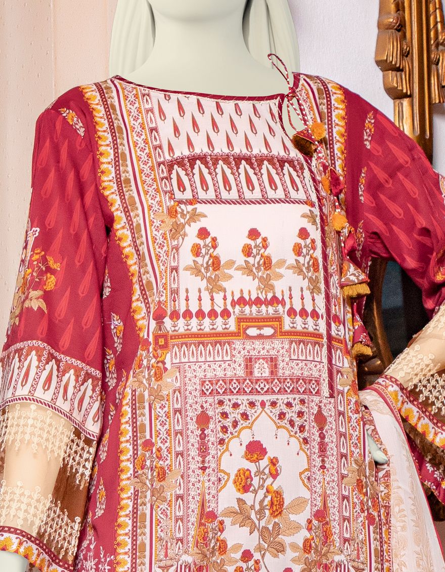 RED LAWN 3PC UNSTITCHED | JLAWN-S-US-21-762/B ELARA