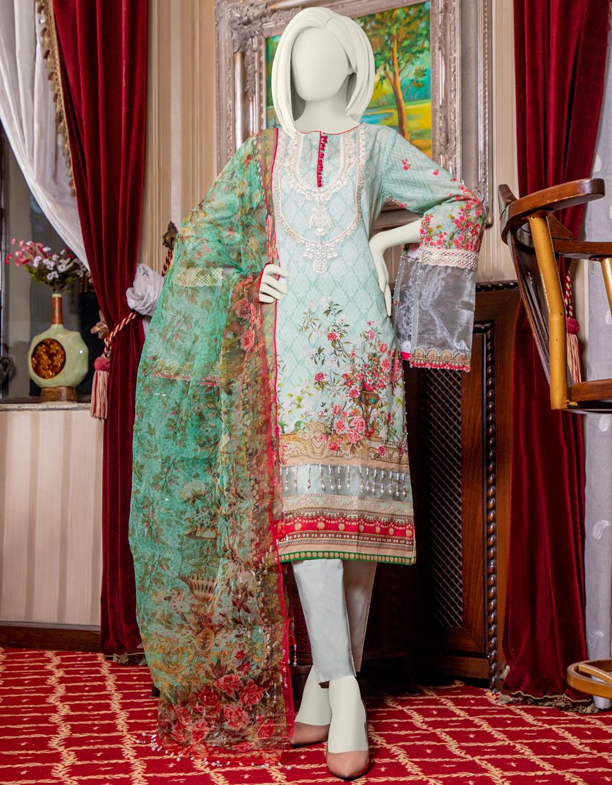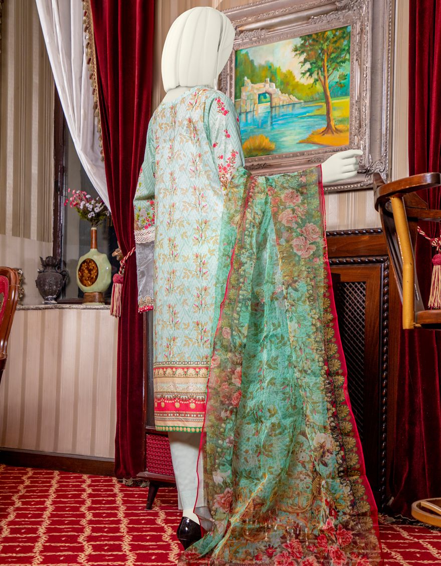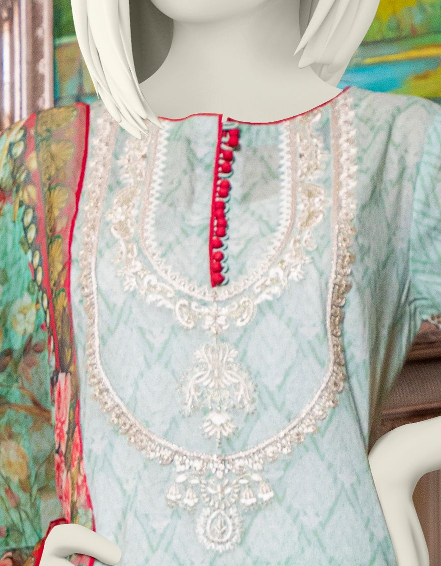 FEROZI GREEN LAWN 3PC UNSTITCHED | JLAWN-S-US-21-775 ICE BLUE