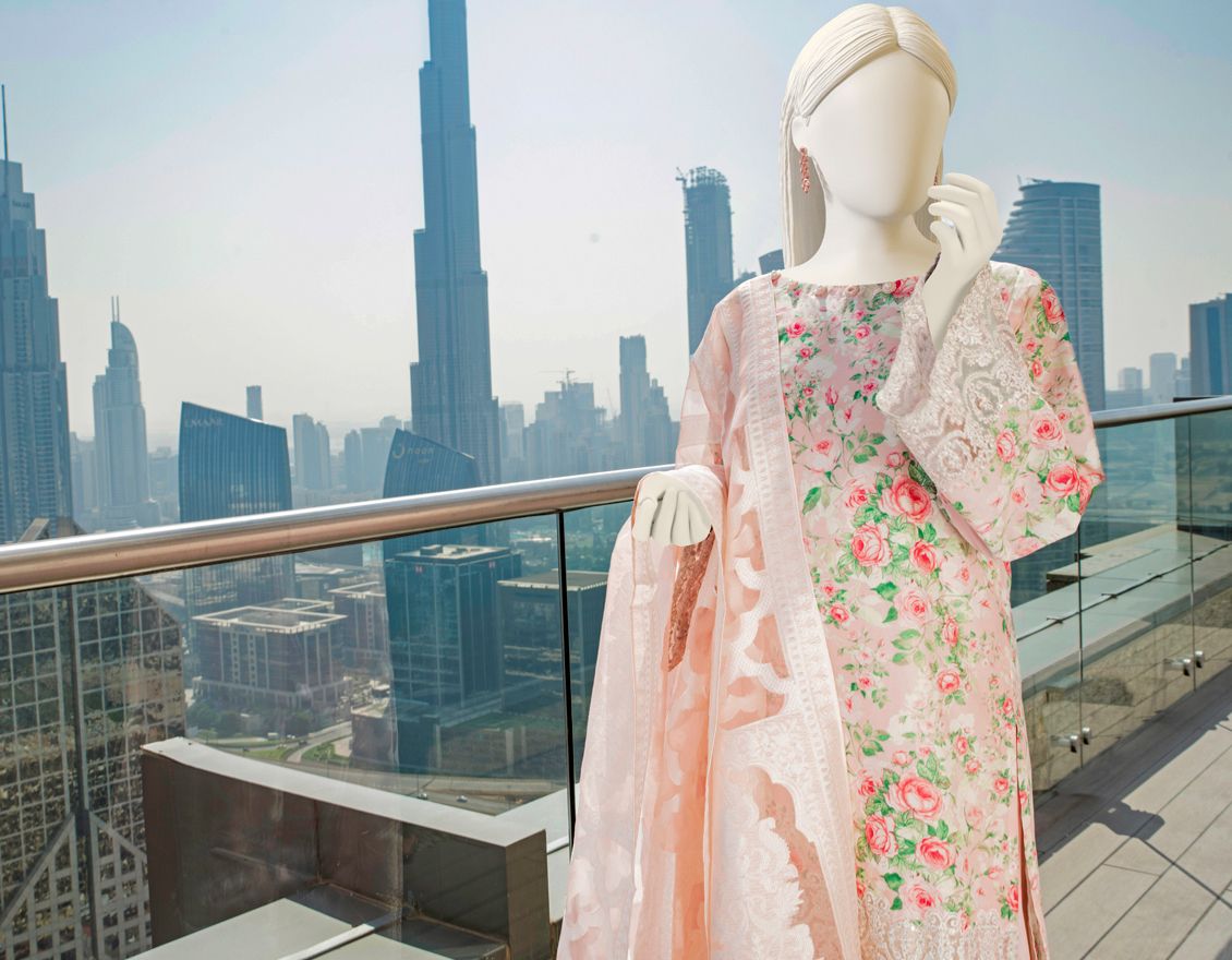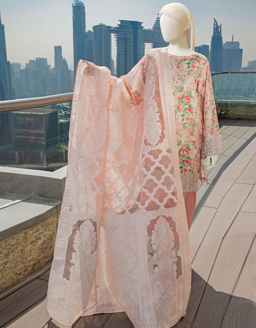 PINK LAWN 3PC UNSTITCHED | JLAWN-S-US-22-047 MEHTAB