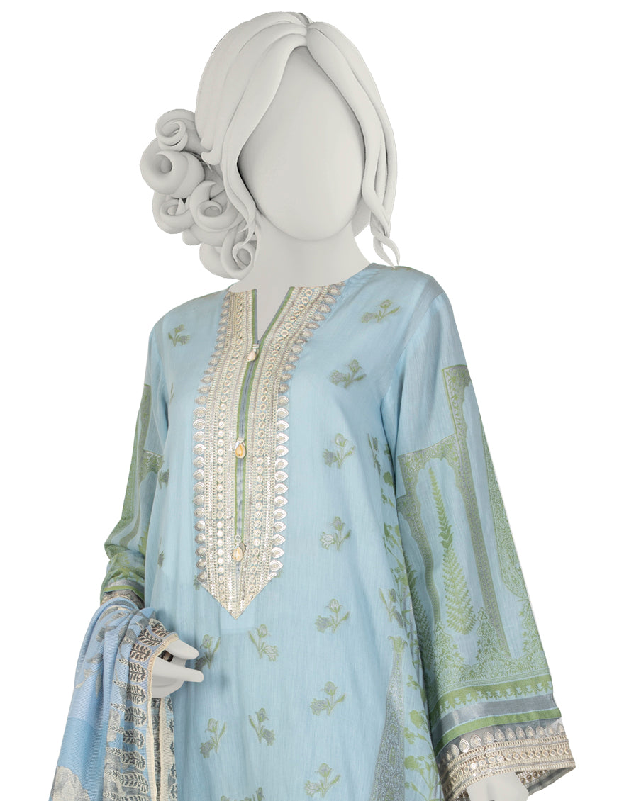 Collection Type: Embroidered Jacquard Shirt & Printed Dobby Net Dupatta With Trouser