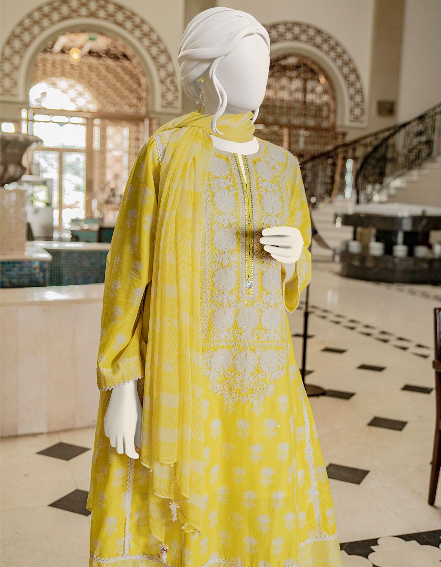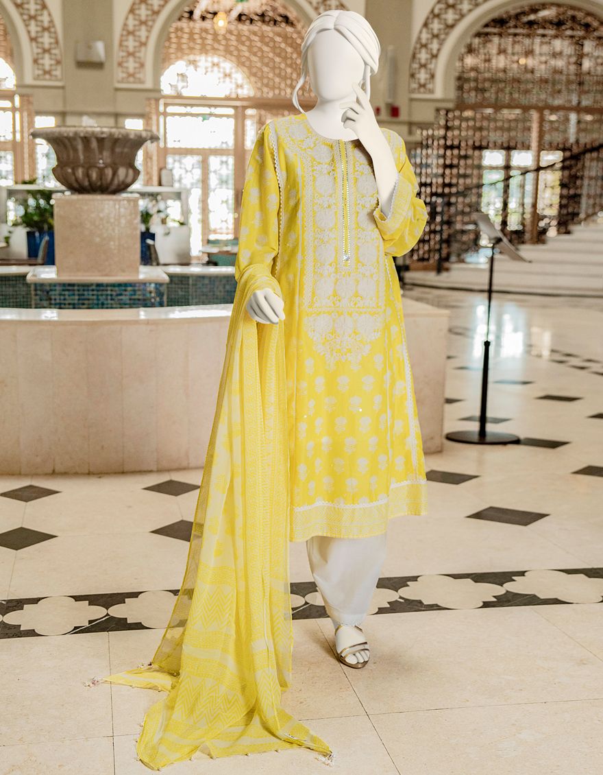 YELLOW LAWN 3PC UNSTITCHED | JLAWN-S-US-22-060 AKIO