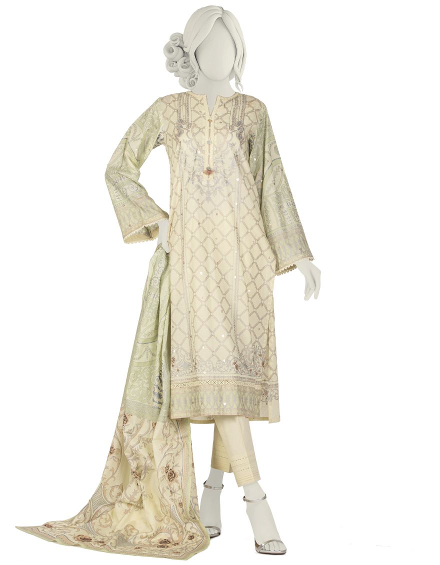 Collection Type: Embroidered Gold Printed Lawn Shirt & Lawn Dupatta With Trouser Lawn Dupatta