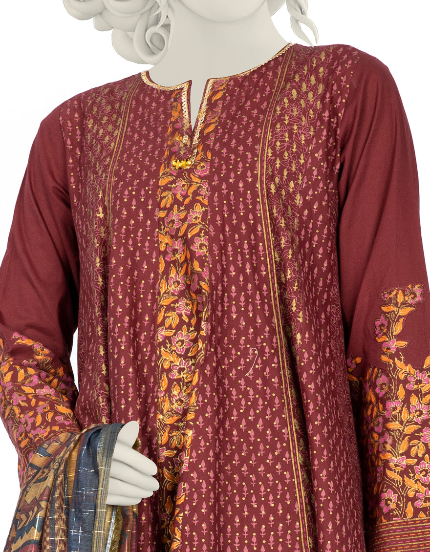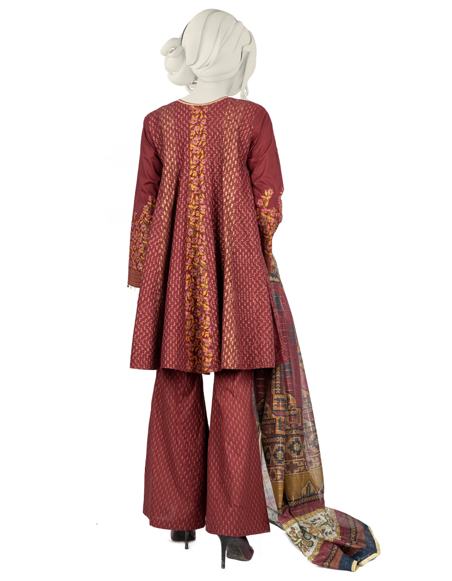 MAROON LAWN 3PC STITCHED | JLAWN-S-US-22-214/S NAMAR