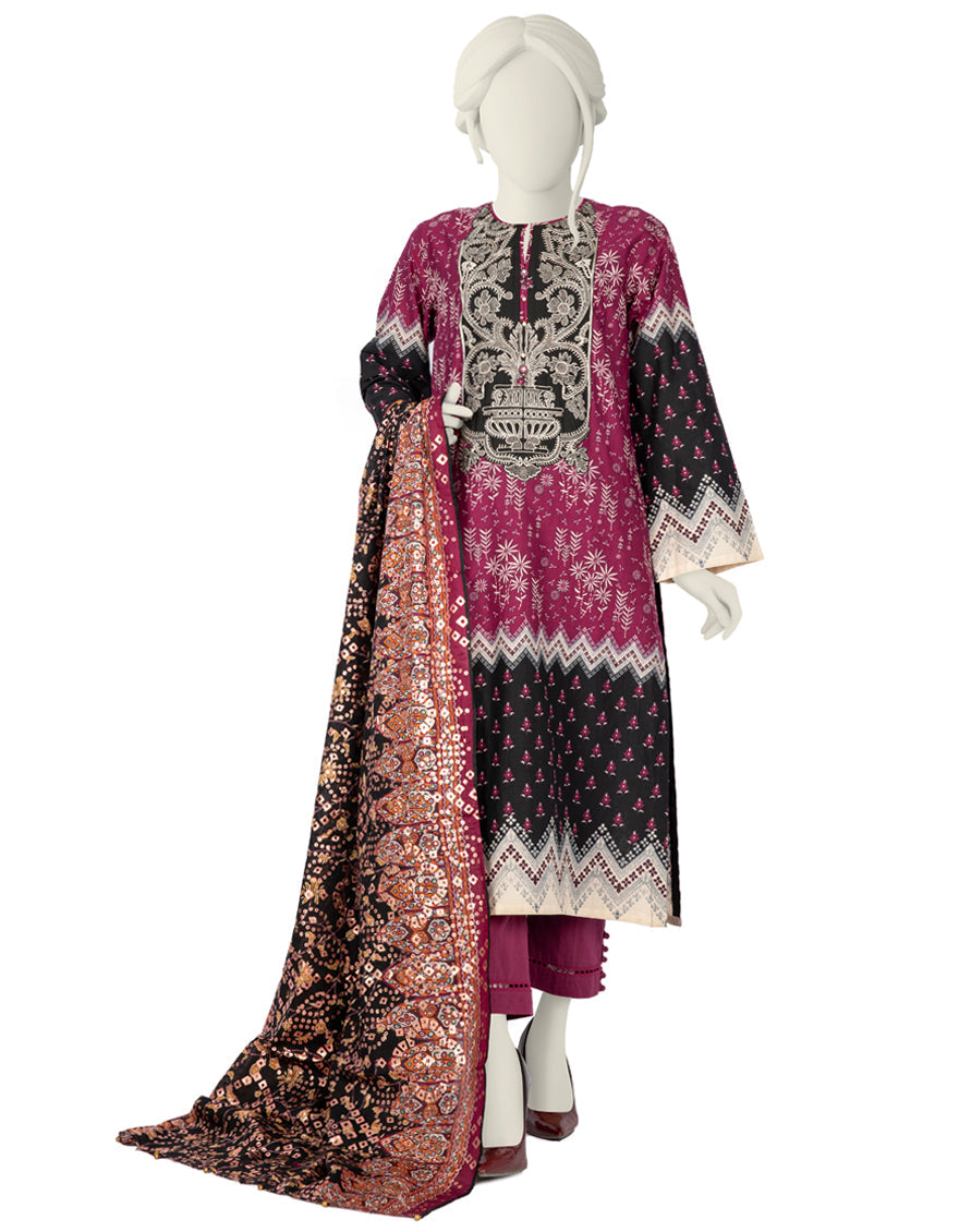 Collection Type: Printed Embroidered Lawn Shirt & Foil Printed Dupatta With Trouser