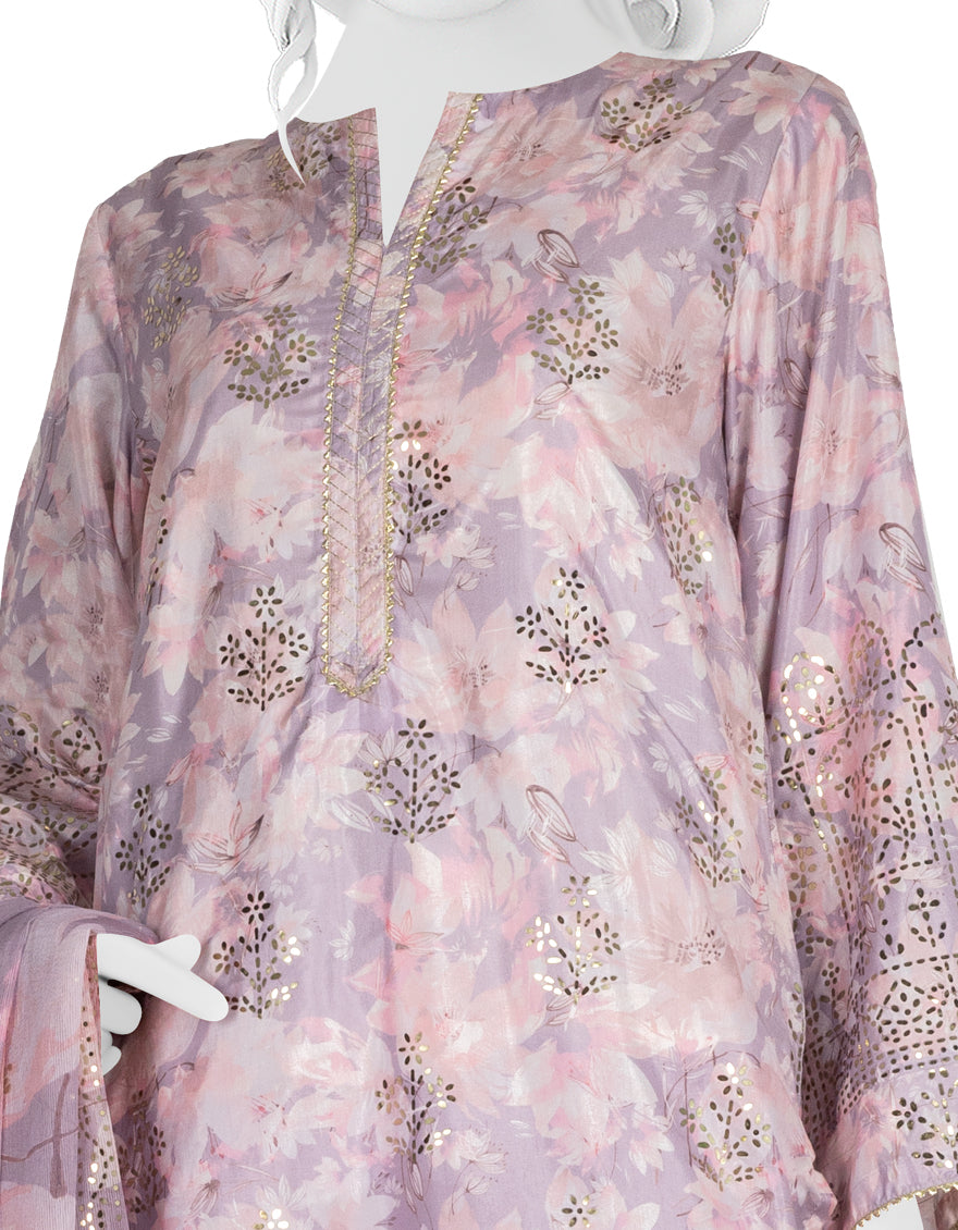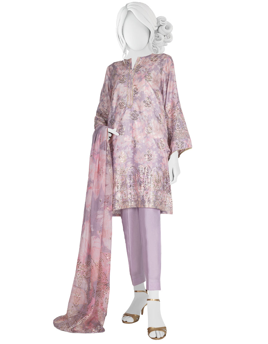 PURPLE RAW SILK 3PC STITCHED | JLAWN-S-US-22-265/S GERIEL