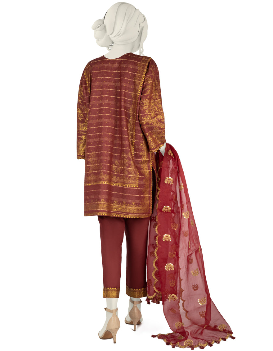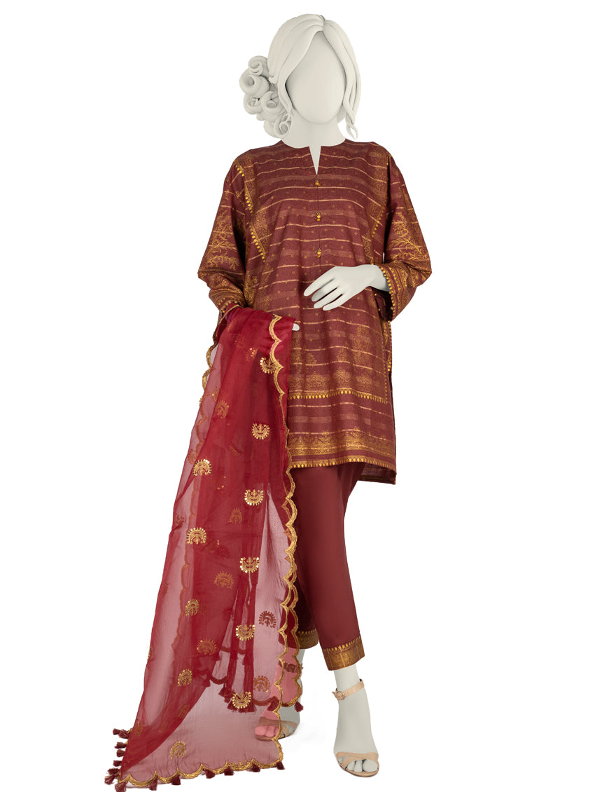 MAROON ZARI 3PC STITCHED | JLAWN-S-US-22-272/S INEJ