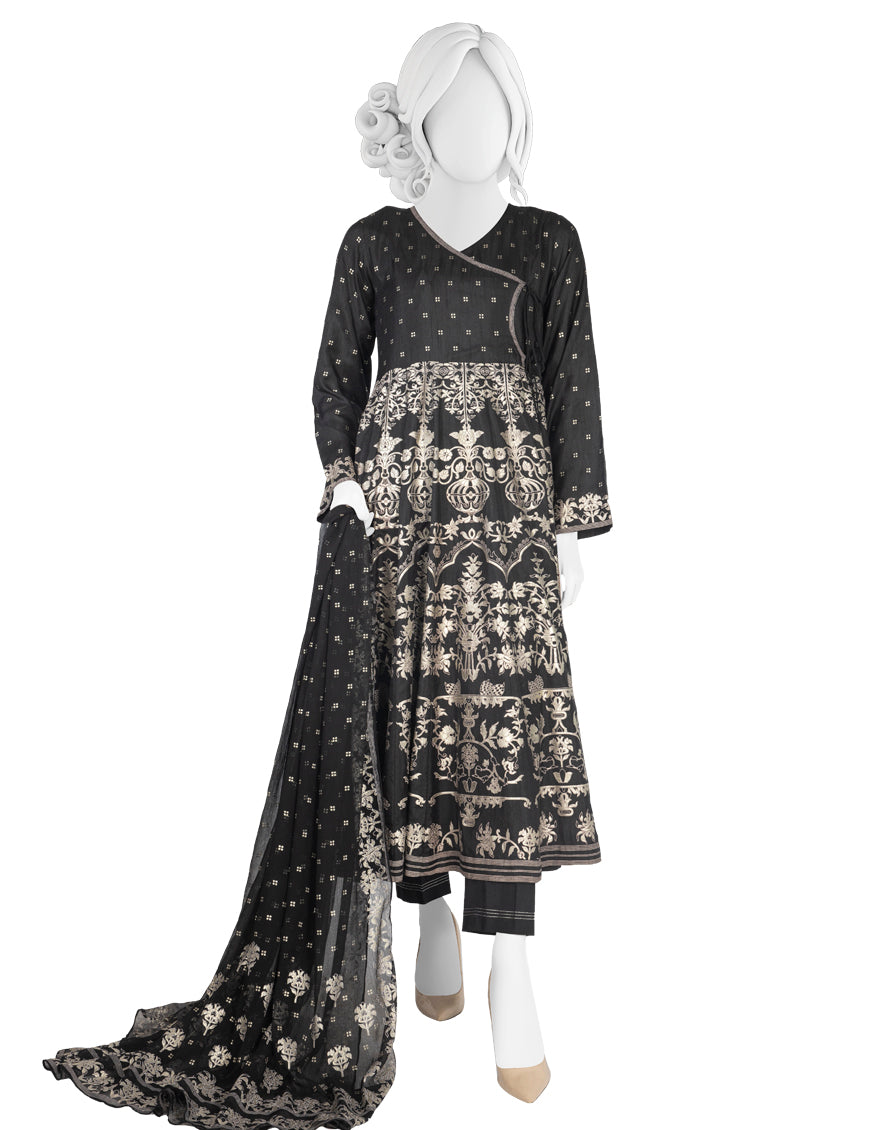 BLACK LAWN 3PC STITCHED | JLAWN-S-US-22-308/S BLACK