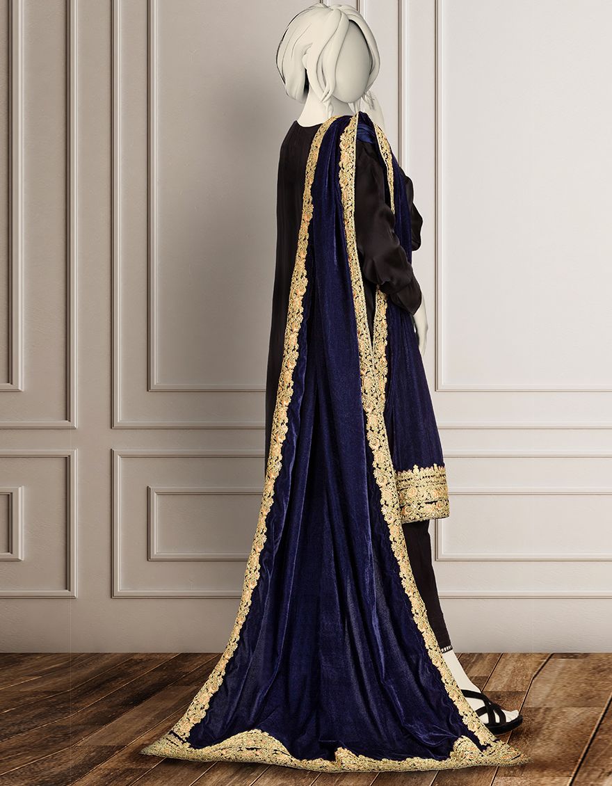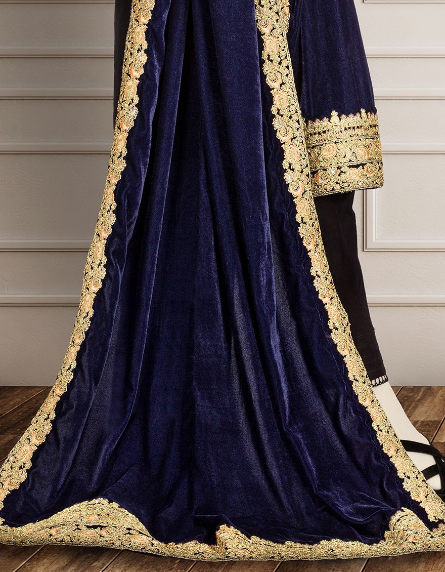 NAVY BLUE VELVET SHAWL | JSH-SHW-US-20-217 FB/FF-328