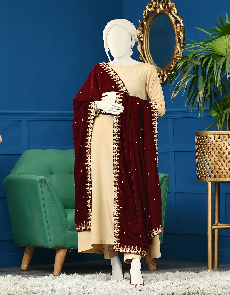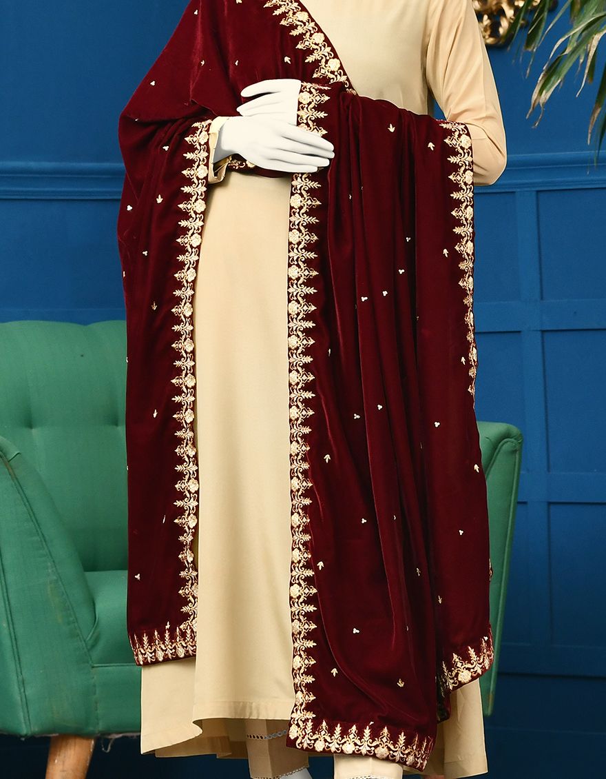 Description: Velvet Embroidered Shawl With Sequence Spray.