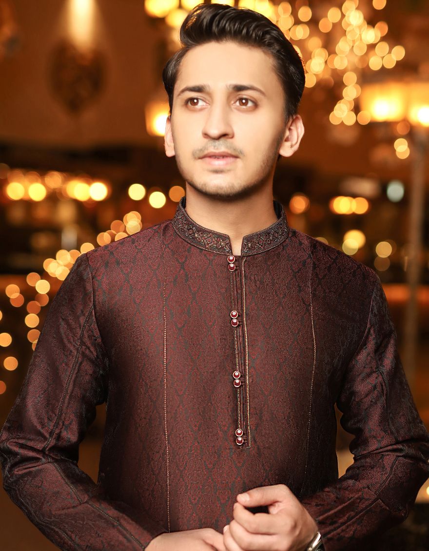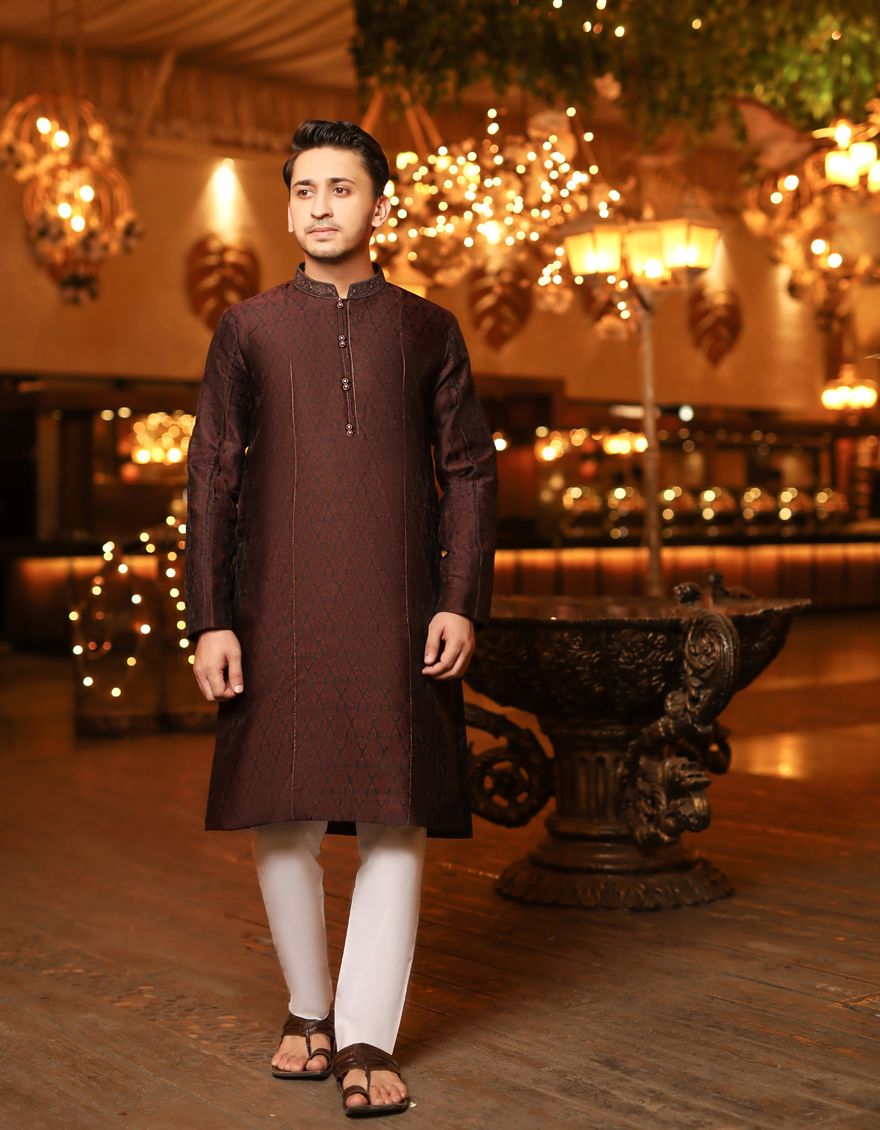 Formal Inner Lining Teens Kurta With Stitching Details On Front Panels With Zardozi Work on Collar & Front Placket, Black Silk Detail Inside Collar And Sleeves.