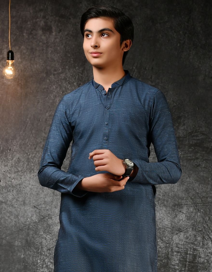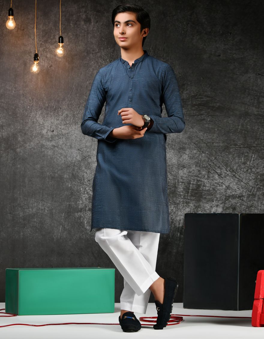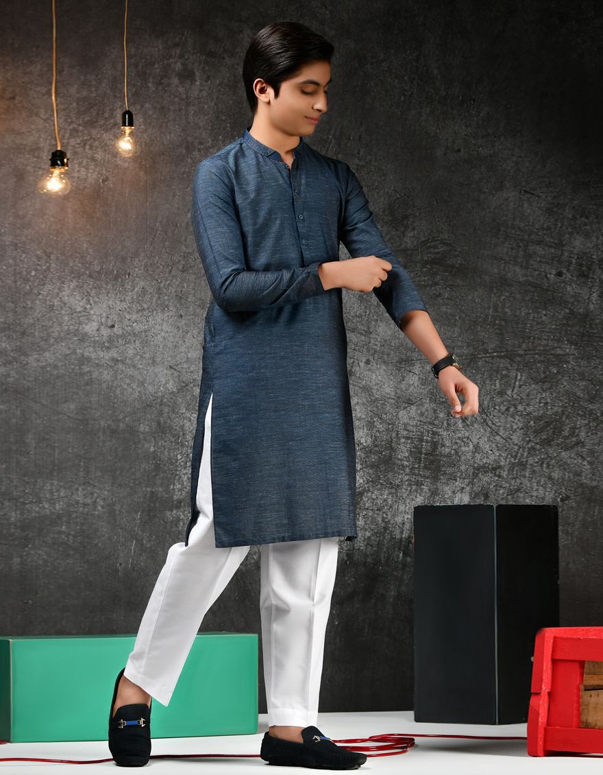 Textured Printed Kurta With Placket And Rivets On The Collar.
