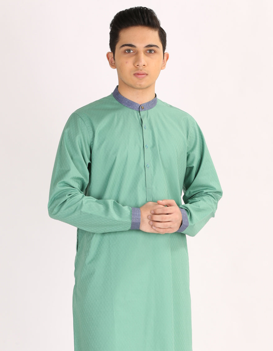 Plain Kurta For Teens With Appliqued Pocket Sleeves Having Stud Button
