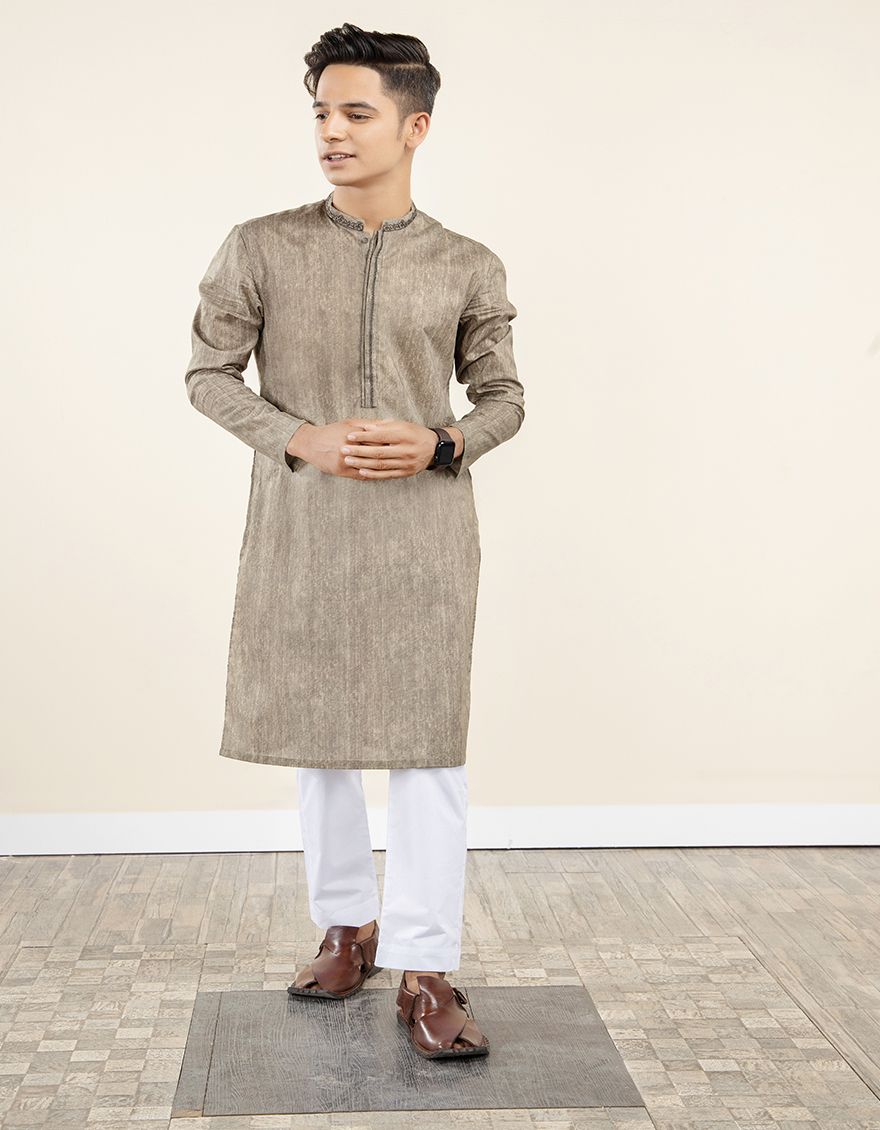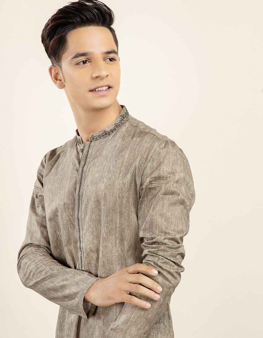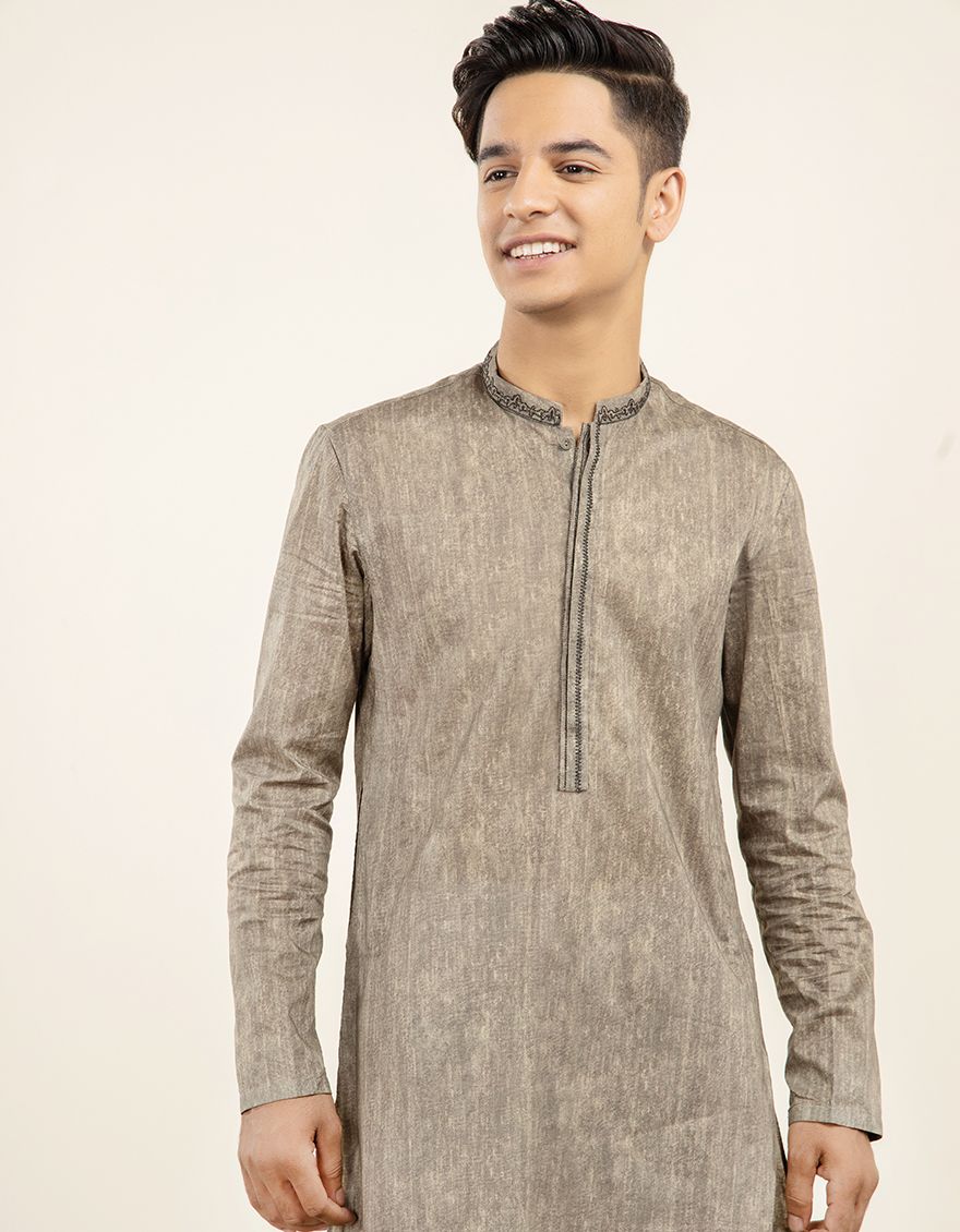 Semi-Formal Kurta For Teens On Lawn Fabric With Contrasted Computer Embroidery On Collar And Front Placket.