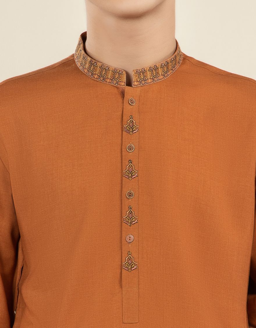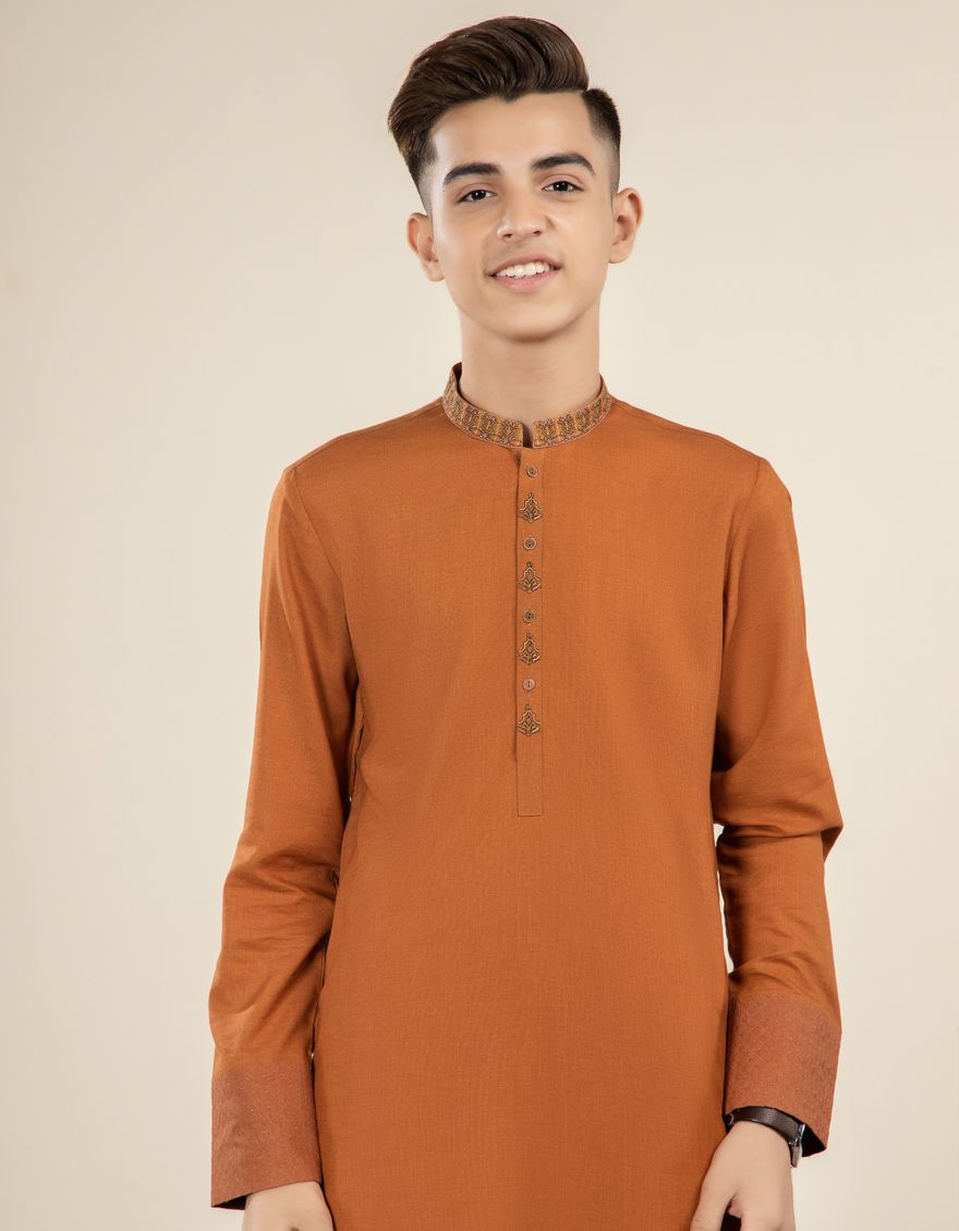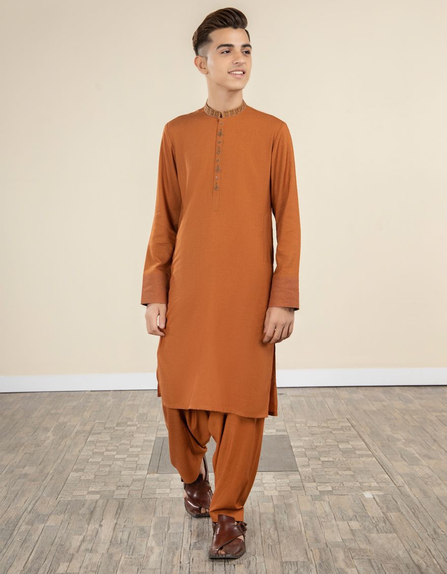 Formal Suit For Teens With Computer Embroidery On Collar, Sleeves & Front Placket.
