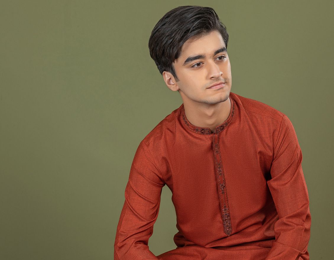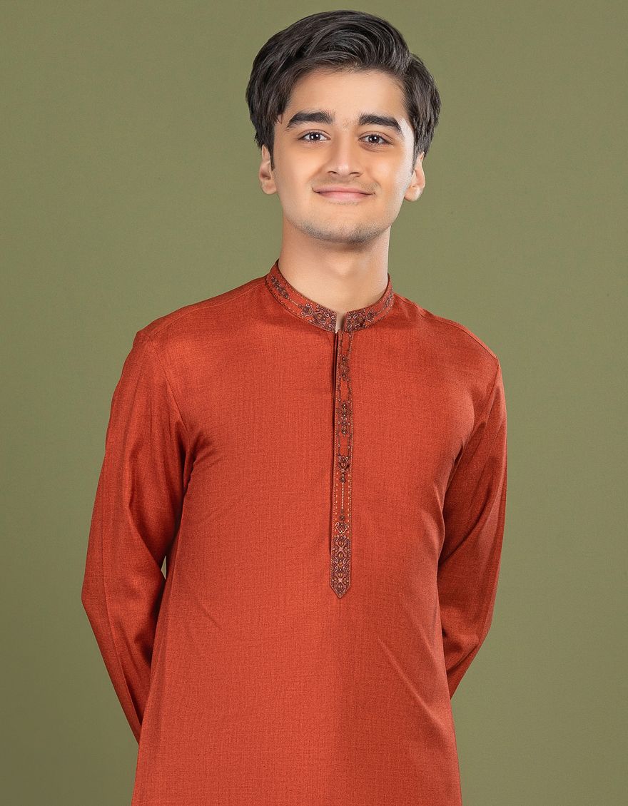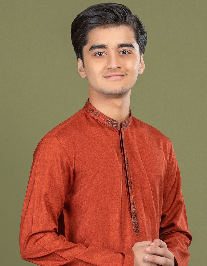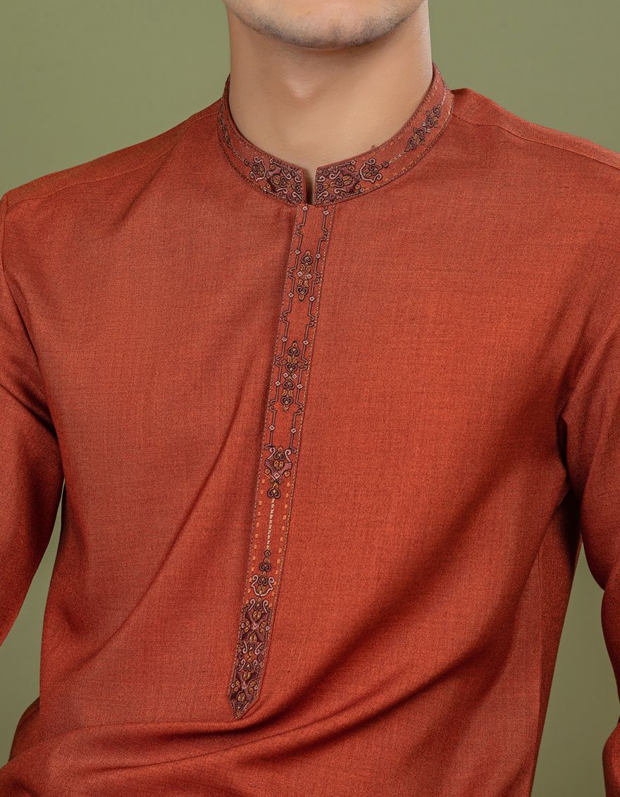 Formal Suit For Teens Embroidery On Collar & Placket.
