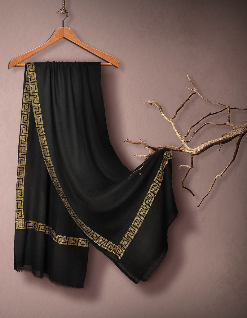 BLACK SHAWL | JSH-SHW-US-21-0021 FB/GOLD STUD SHWAL-BLK