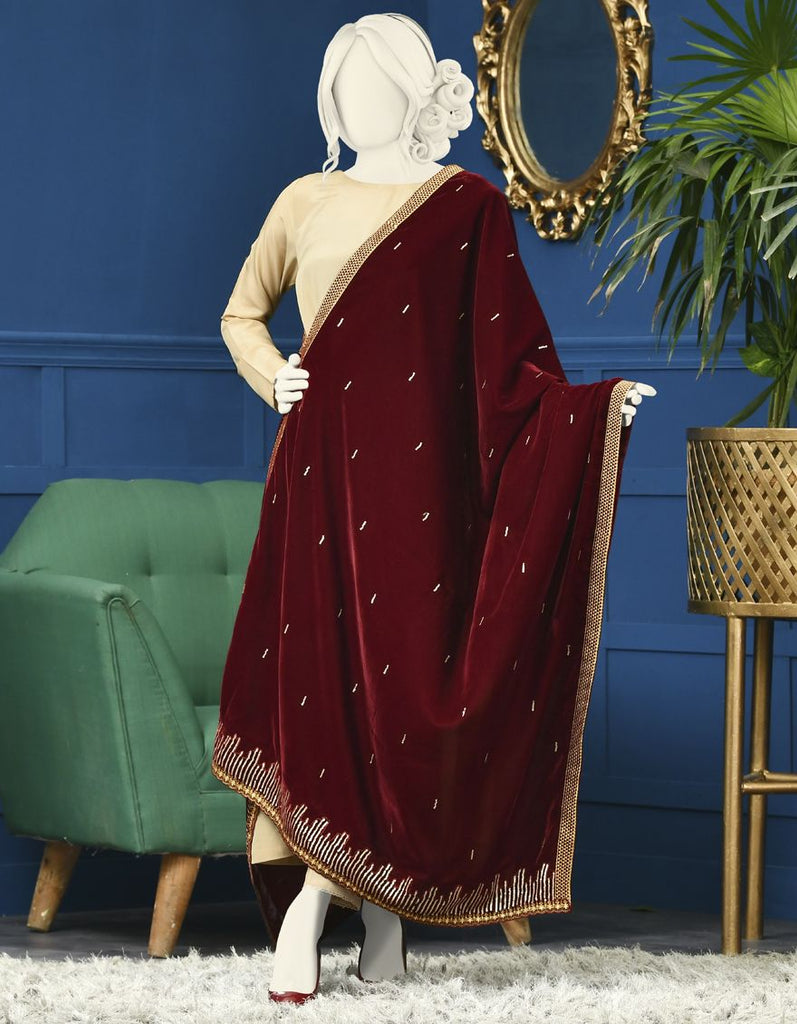 RED VELVET SHAWL | JSH-SHW-US-21-229 FB/FF-328