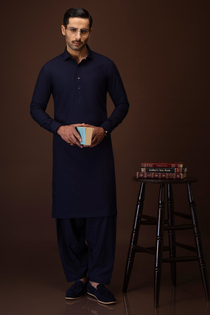 NAVY BLENDED KAMEEZ SHALWAR | CCMKS-S-39601-C3