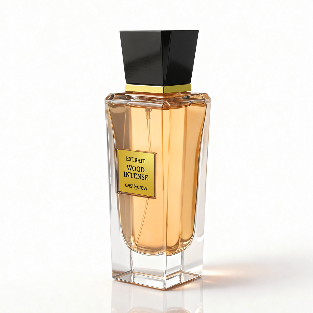 Step into the world of Wood Intense, a fragrance where raw depth meets refined warmth. It begins with a captivating burst of olibanum, cardamom, and Guatemala orange oil, brightened by the soft sweetness of pear.