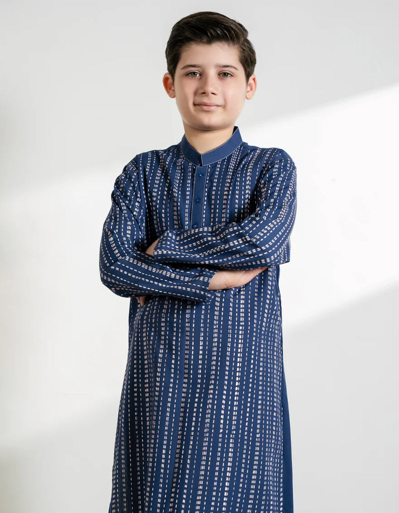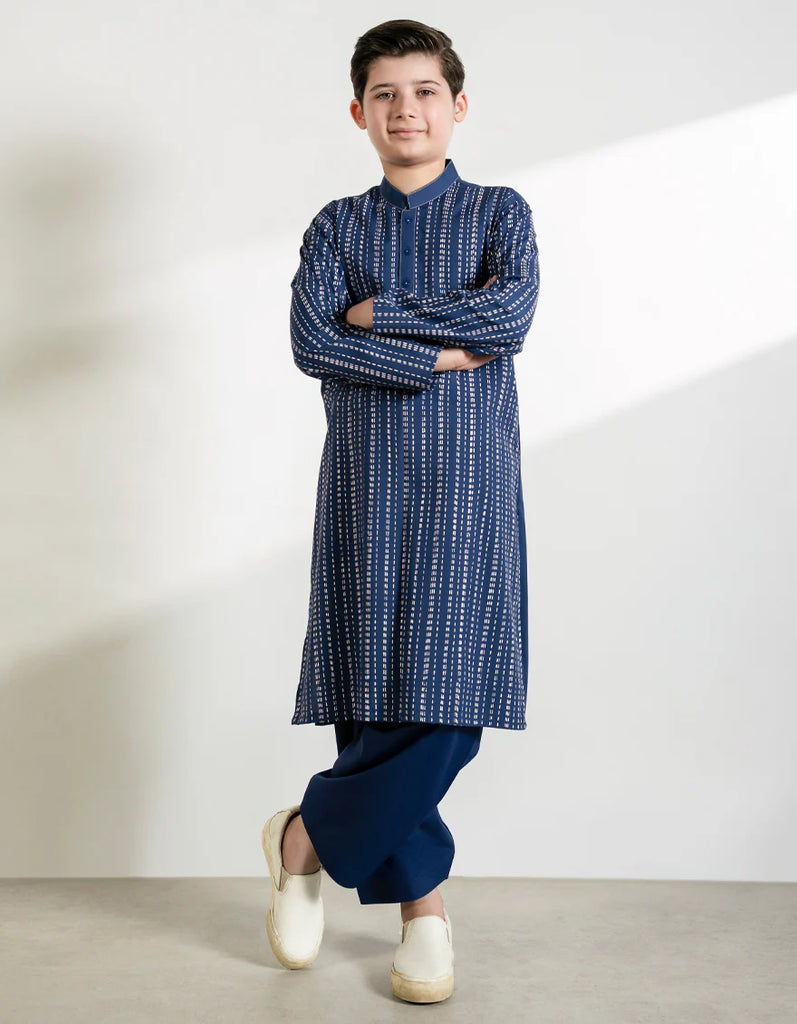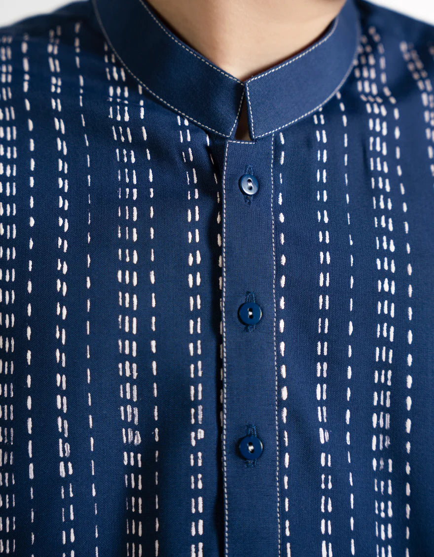 Designed for a sharper, more structured appearance, this Denim Blue Blended Kurta Trousers set offers a modern fit with clean lines. The kurta features subtle detailing, while the straight-cut trousers ensure a neat silhouette. Perfect for events, workdays, or weekend wear.