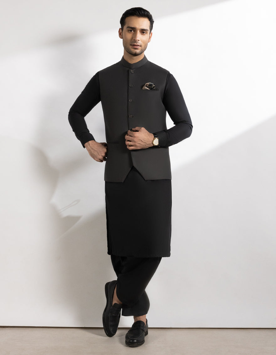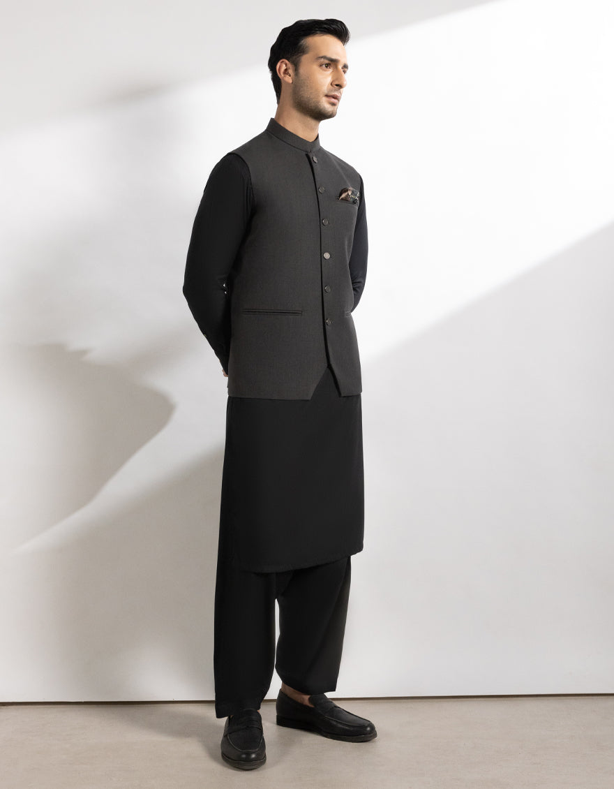 Complete your traditional outfit with this stylish Dark Grey Suiting Waistcoat. It adds a touch of class and complements your look perfectly.