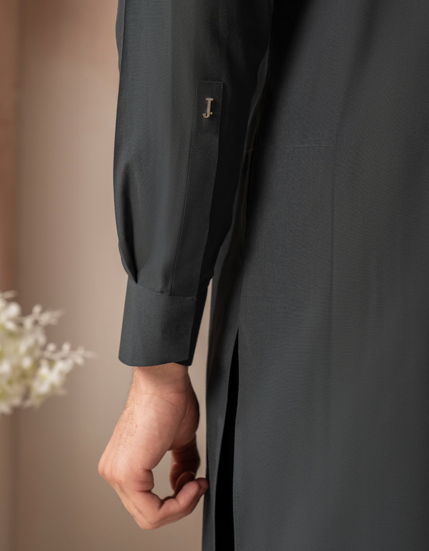 Traditional and simple, this dark green cvc casual kameez shalwar is made for comfortable daily wear and relaxed occasions.