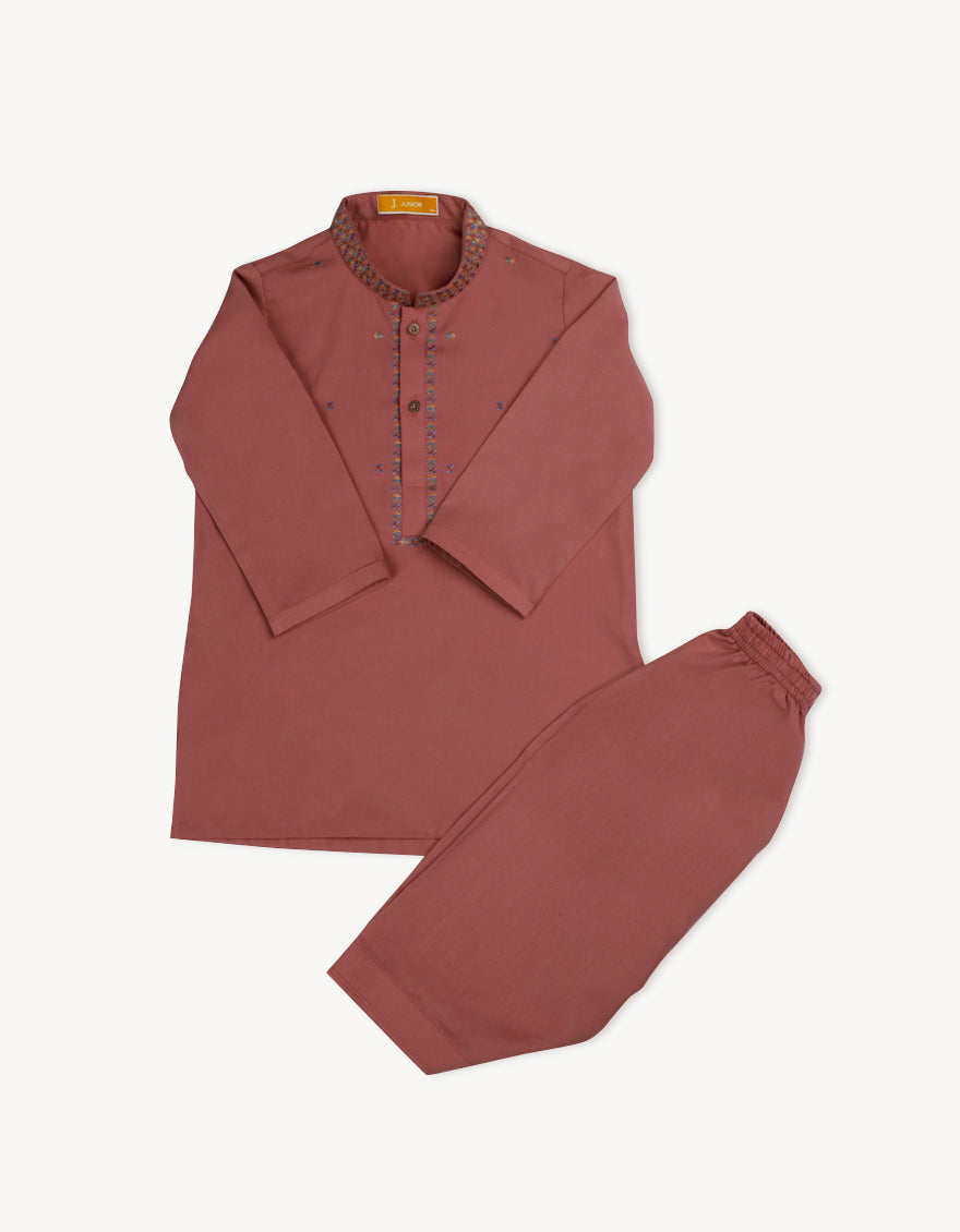 Made for comfort and ease, this Pink Blended Kameez Shalwar features soft stitching and a gentle design touch. The subtle patterns and button details add a graceful look without causing any fuss. Ideal for little ones who need free movement with a neat appearance.