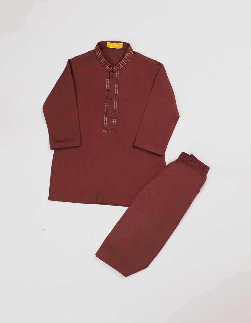 Made for comfort and ease, this Plum Blended Kameez Shalwar features soft stitching and a gentle design touch. The subtle patterns and button details add a graceful look without causing any fuss. Ideal for little ones who need free movement with a neat appearance.