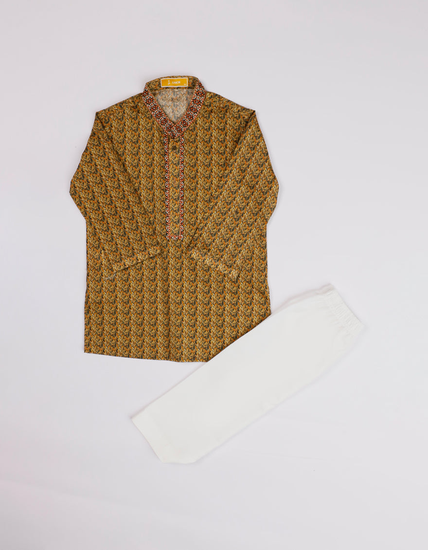 Made for comfort and ease, this Kameez Shalwar features soft stitching and a gentle design touch. The subtle patterns and button details add a graceful look without causing any fuss. Ideal for little ones who need free movement with a neat appearance.
