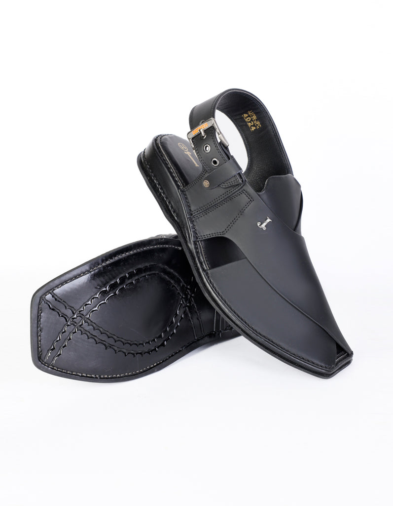 MATT BLACK PESHAWARI SANDALS | JJFW-JPC-4024/S25-SC-PLN