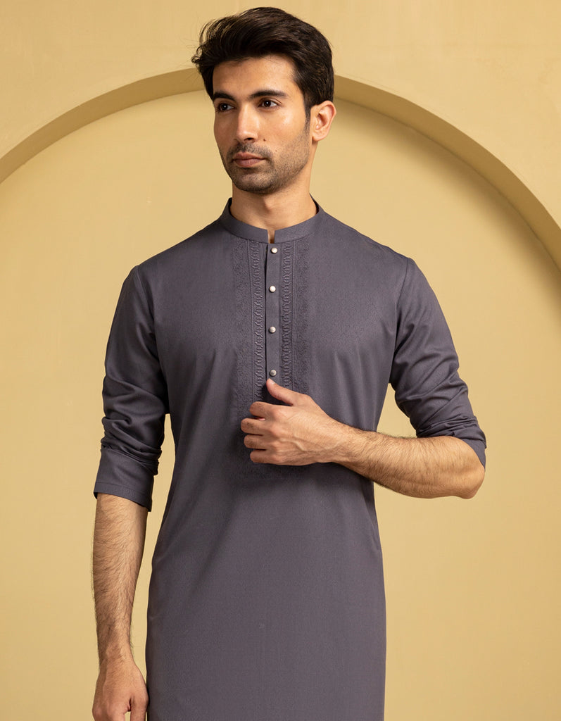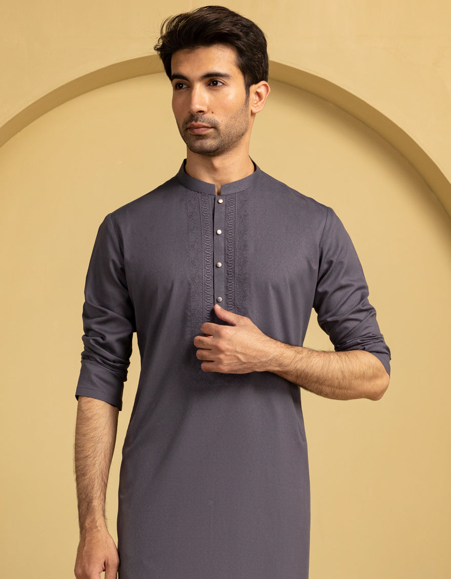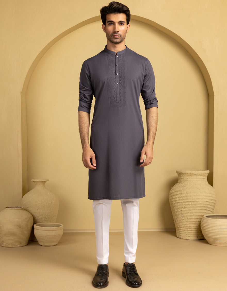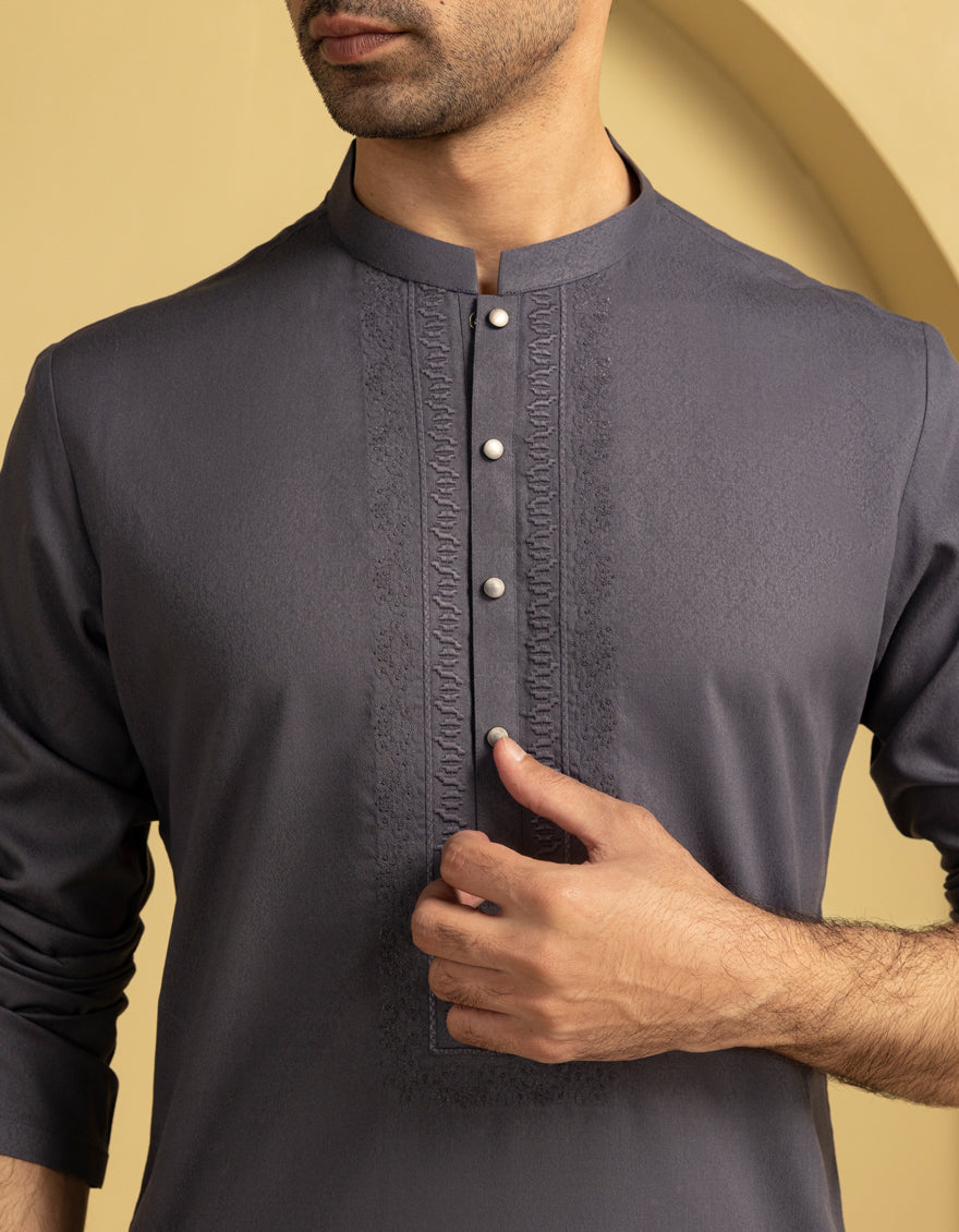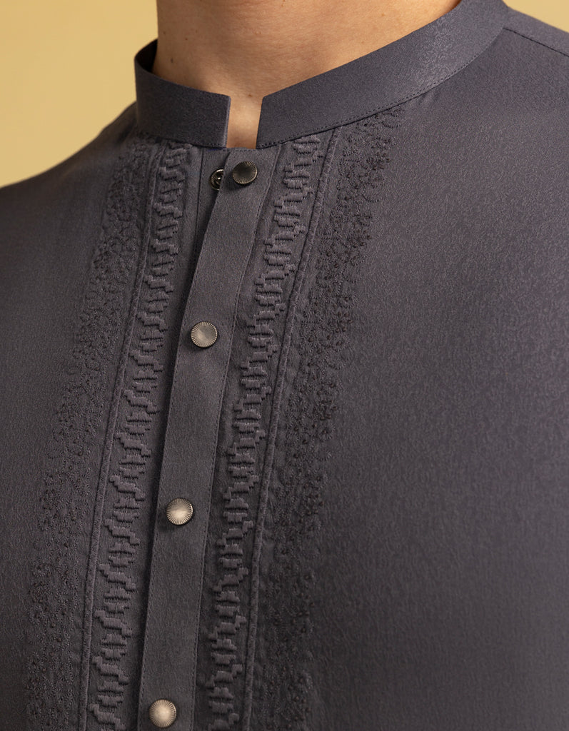 Upgrade your look with this Grey Blended Semi-Formal Kurta, which mixes traditional and modern styles for a classy yet comfortable outfit.