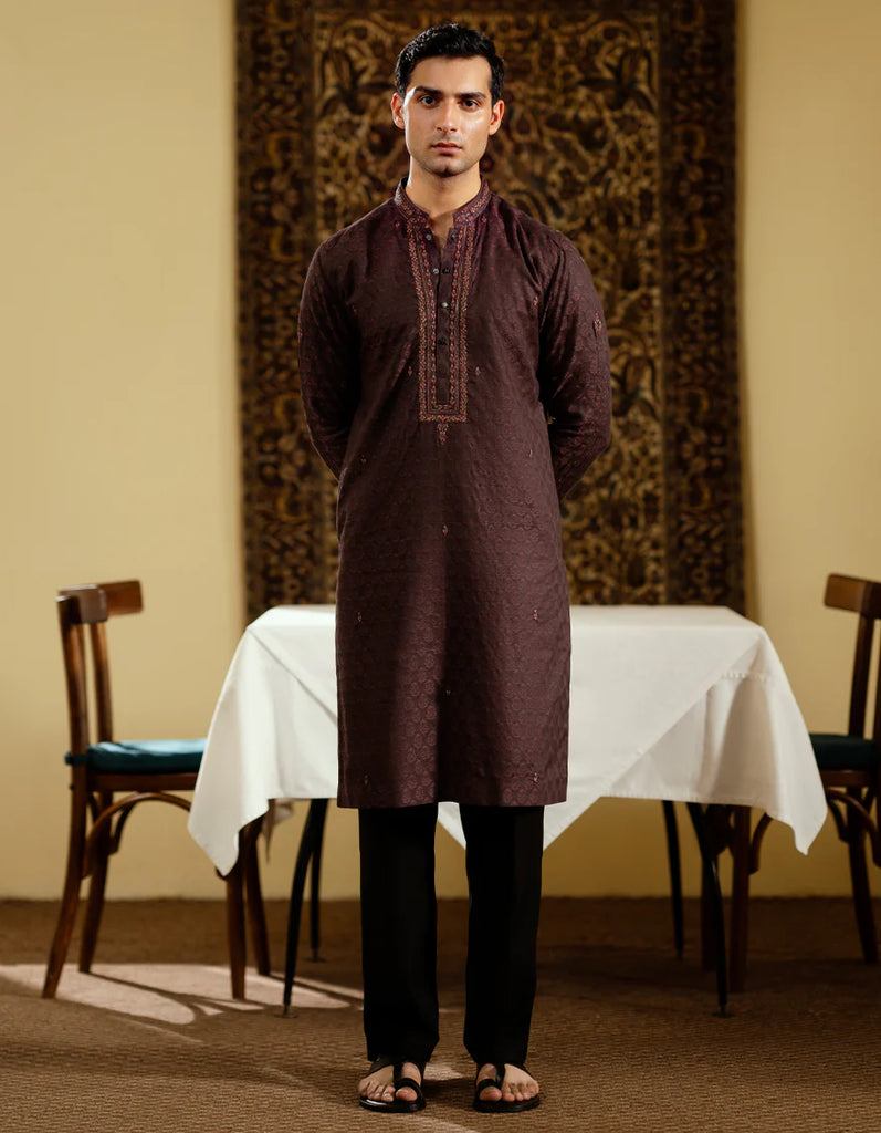 MAROON JACQUARD SPECIAL KURTA | JJK-SP-A-48233/S25/JJ9644-FL