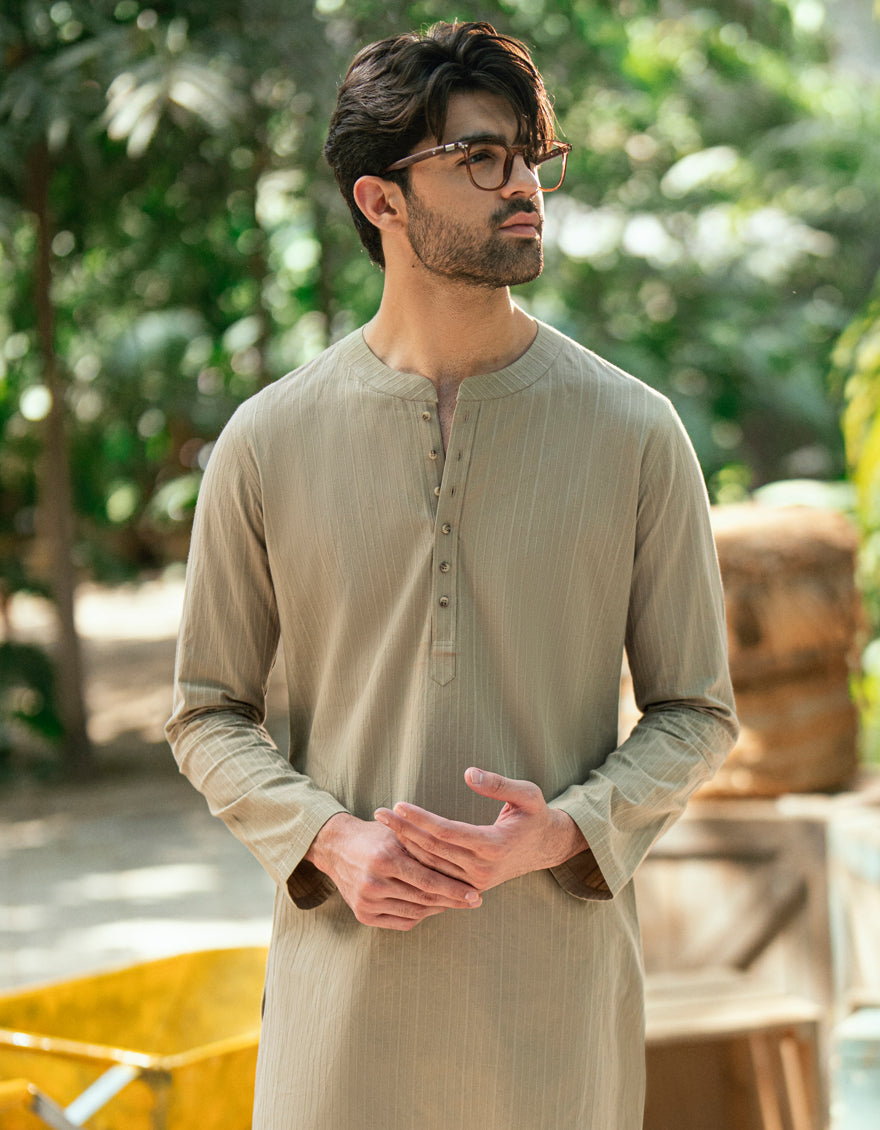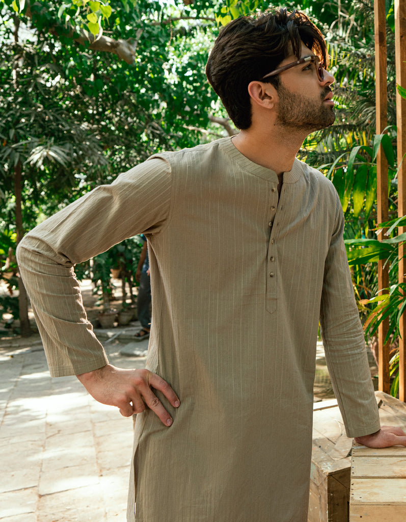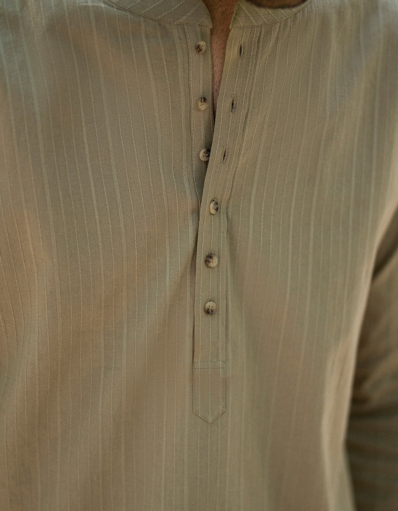 This beige bunnat cotton casual short kurta combines classic style with modern simplicity. Featuring a comfortable thigh-length cut, it's designed for easy, everyday wear.