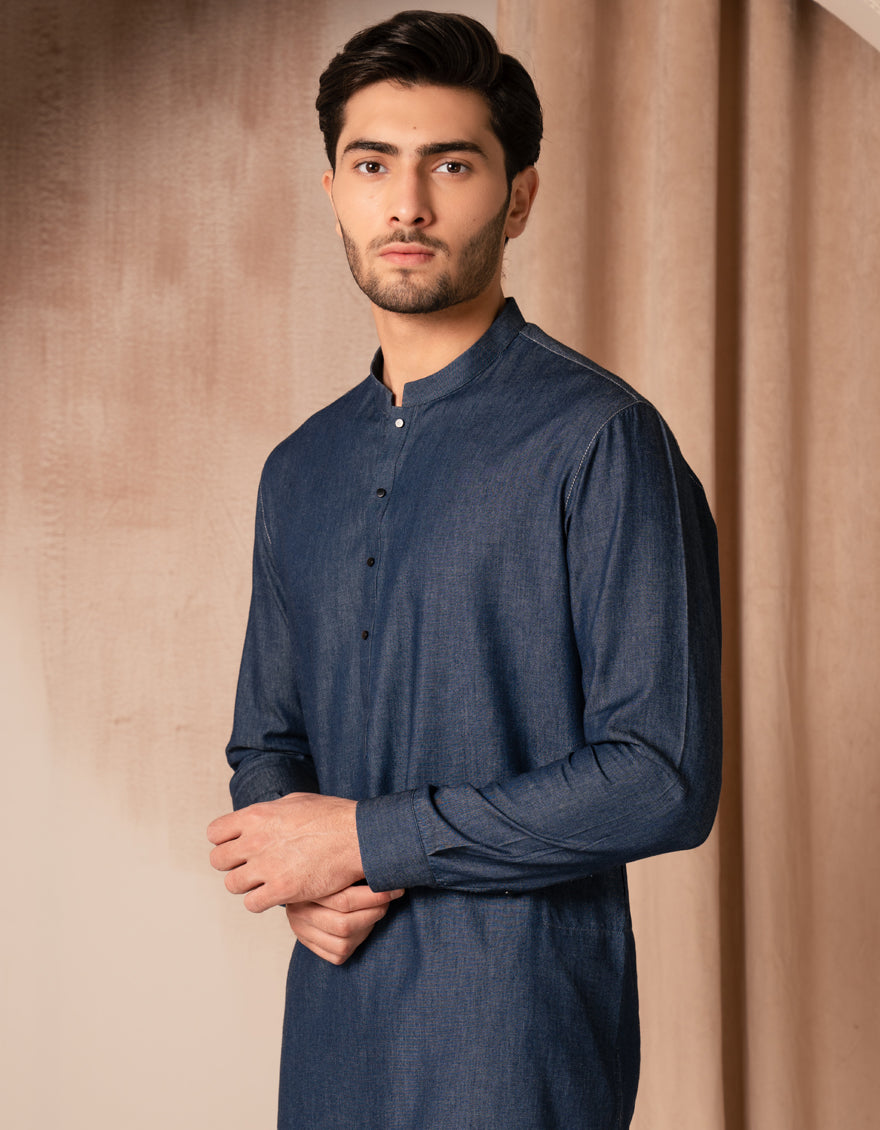 DENIM BLUE COTTON THIGH LENGTH KURTA | JJTHLK-A-47480/S25/JJ10220-CL