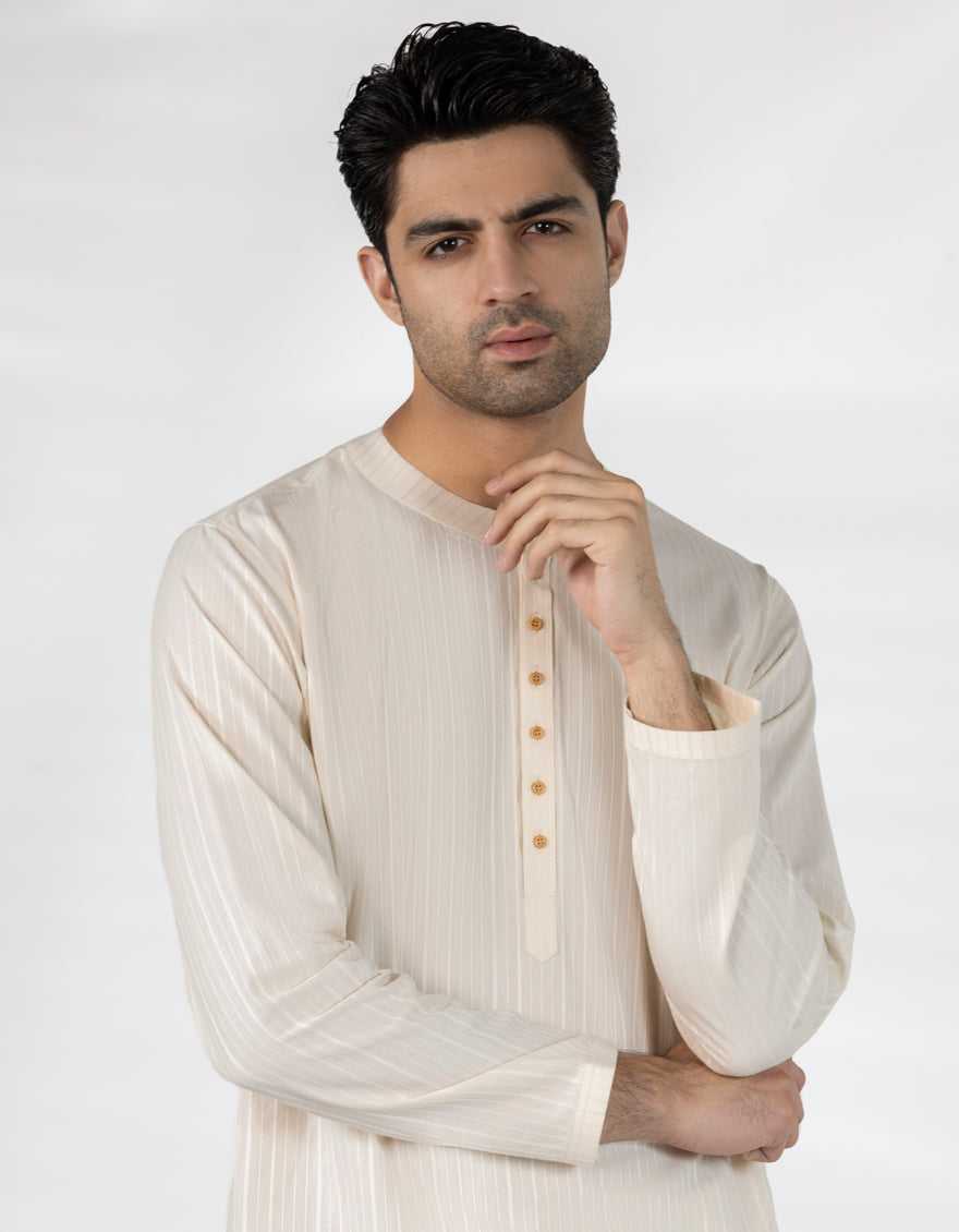 This Cream Cotton Casual Short Kurta combines elegance with simplicity. Finished with detailed stitching and smart button styling, it's ideal for semi-formal occasions or casual meetups. A versatile piece that carries both ease and refinement.