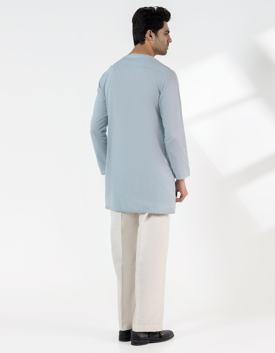 This Sky Blue Cotton Casual Short Kurta combines elegance with simplicity. Finished with detailed stitching and smart button styling, it's ideal for semi-formal occasions or casual meetups. A versatile piece that carries both ease and refinement.