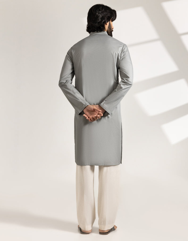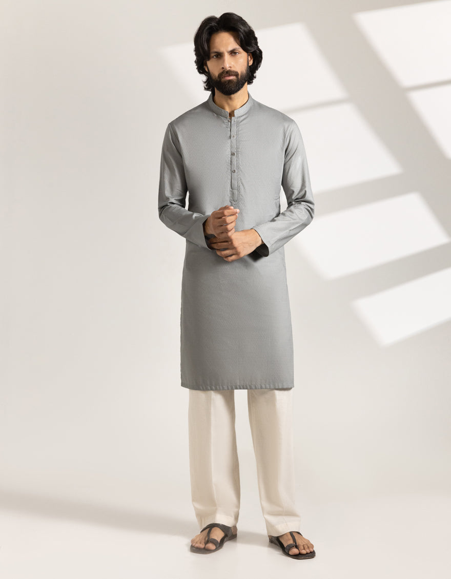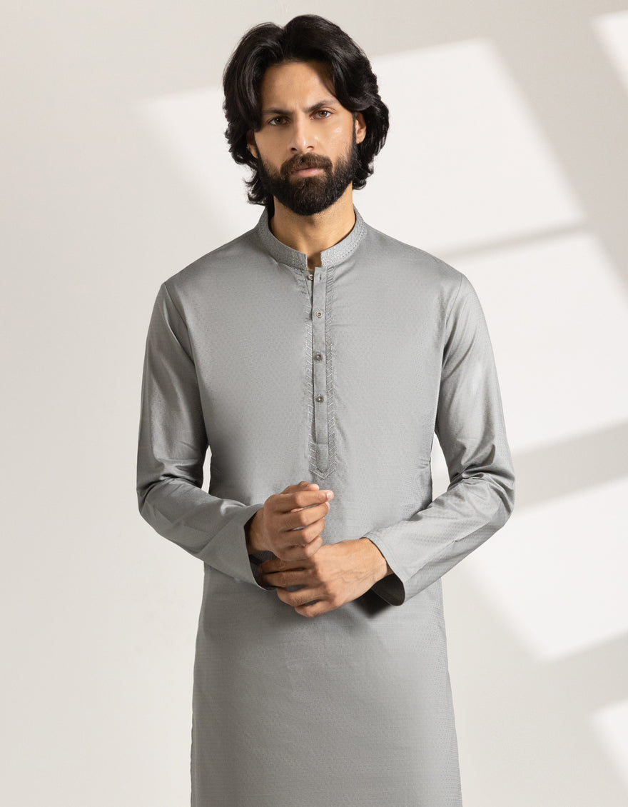 Upgrade your look with this grey cotton semi-formal kurta, which mixes traditional and modern styles for a classy yet comfortable outfit.