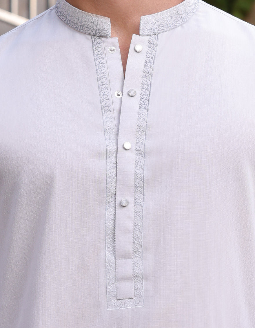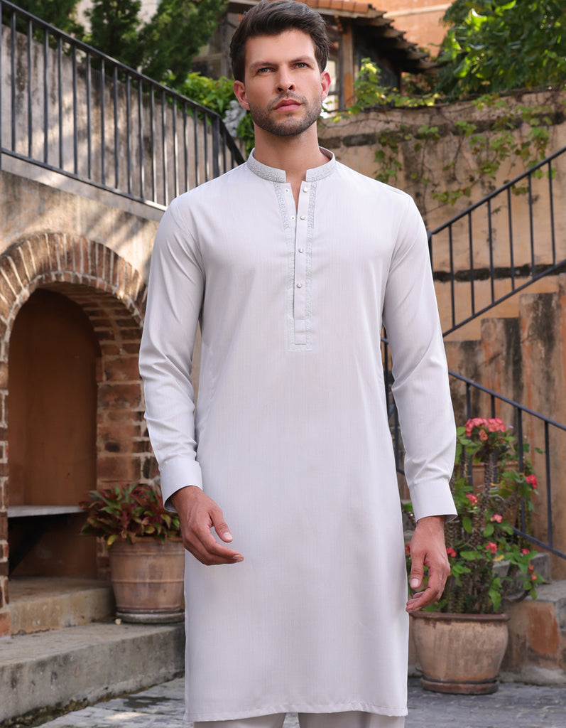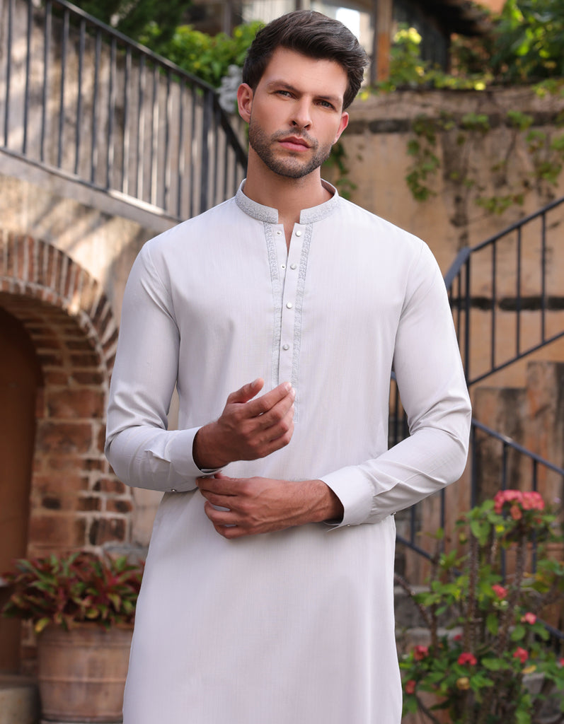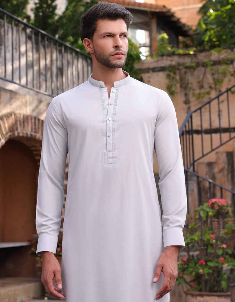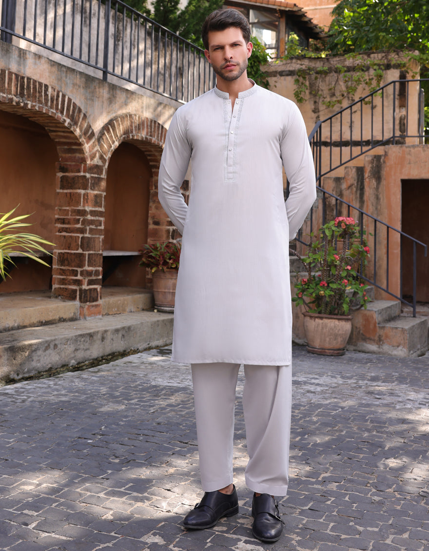 With subtle detailing and a refined silhouette, this Smoke Grey Blended Semi-Formal Kameez Shalwar embodies understated elegance, perfect for semi-formal gatherings and events.