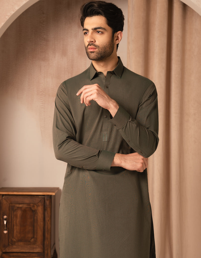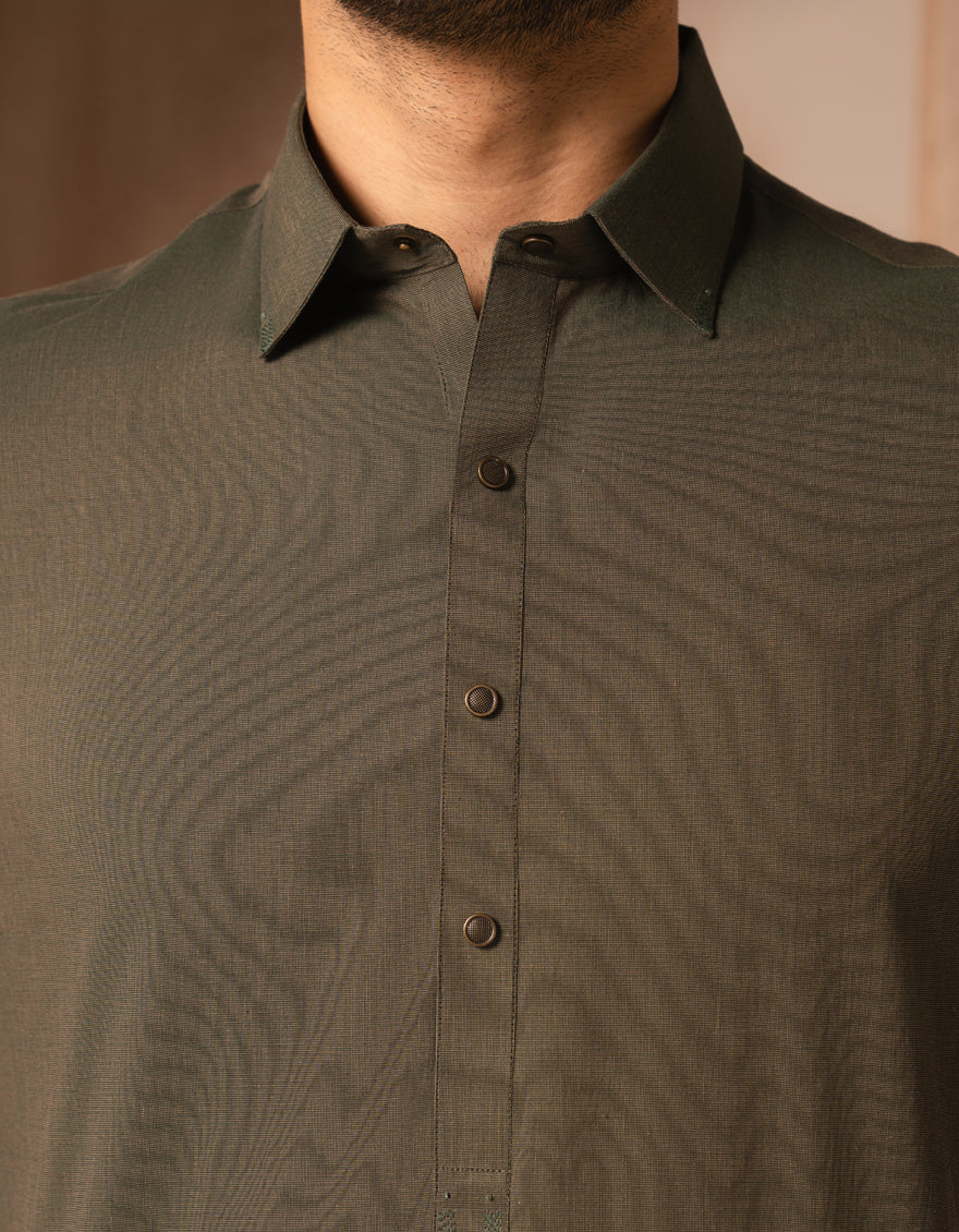 Traditional and simple, this green cotton casual kameez shalwar is made for comfortable daily wear and relaxed occasions.