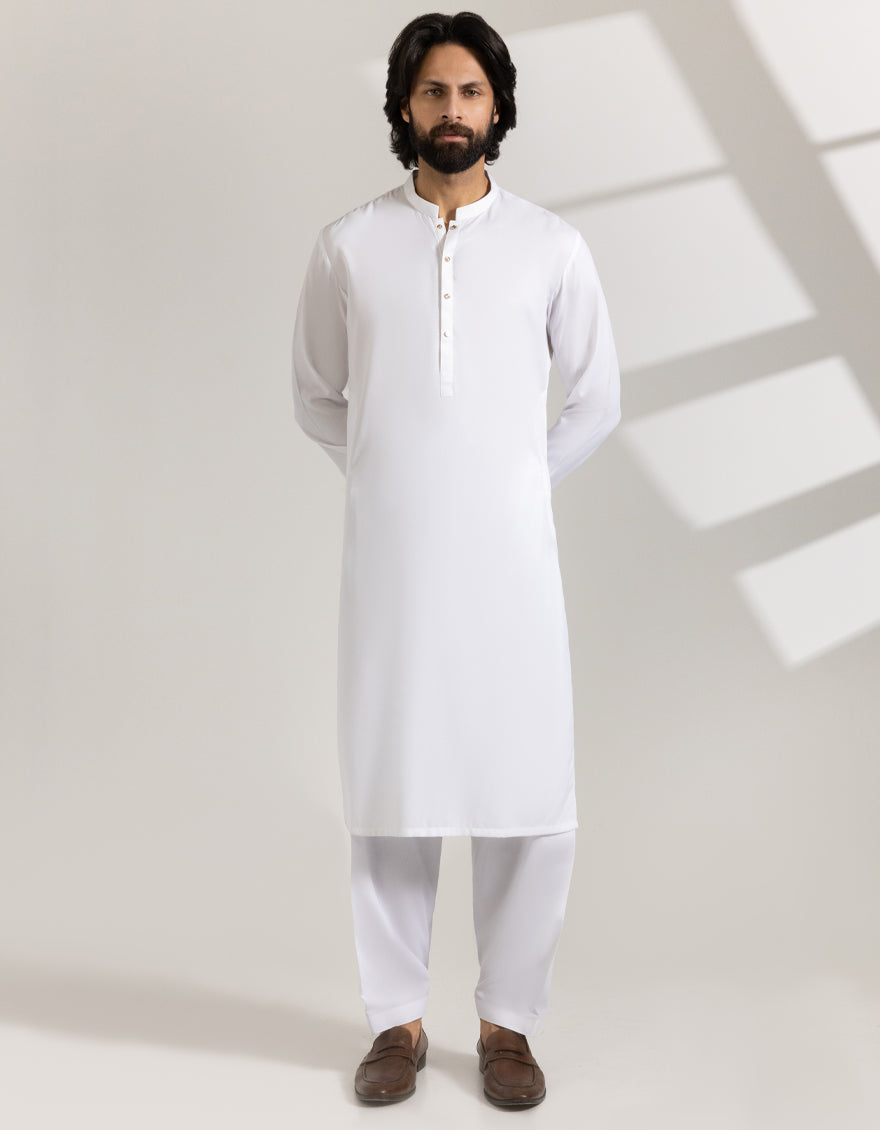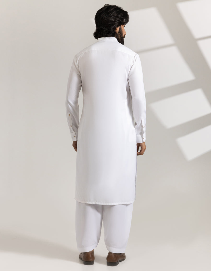 A classic eastern wear set designed with clean stitching and thoughtful detailing. The White Blended Casual Kameez Shalwar offers a neat look & comfortable fit - ideal for long wear, daily use, or special occasions with a touch of tradition.