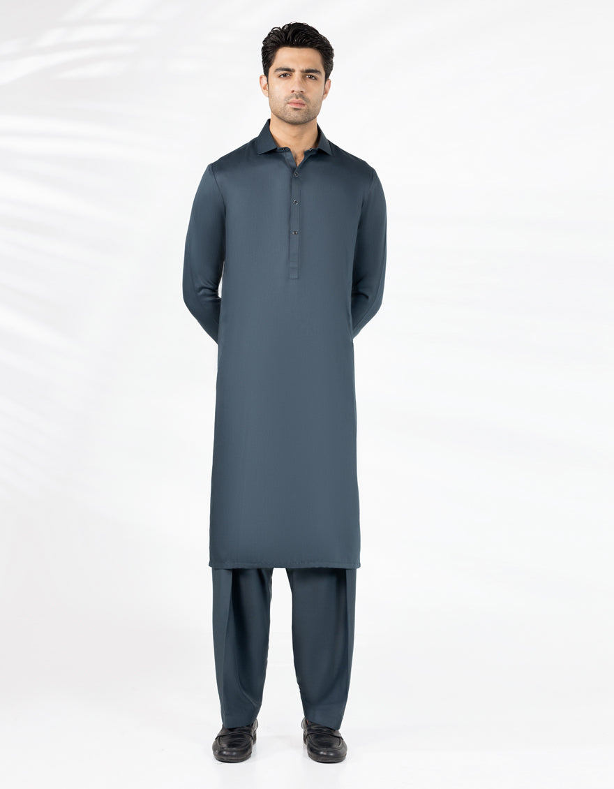 A classic eastern wear set designed with clean stitching and thoughtful detailing. The Midnight Grey Blended Casual Kameez Shalwar offers a neat look & comfortable fit - ideal for long wear, daily use, or special occasions with a touch of tradition.