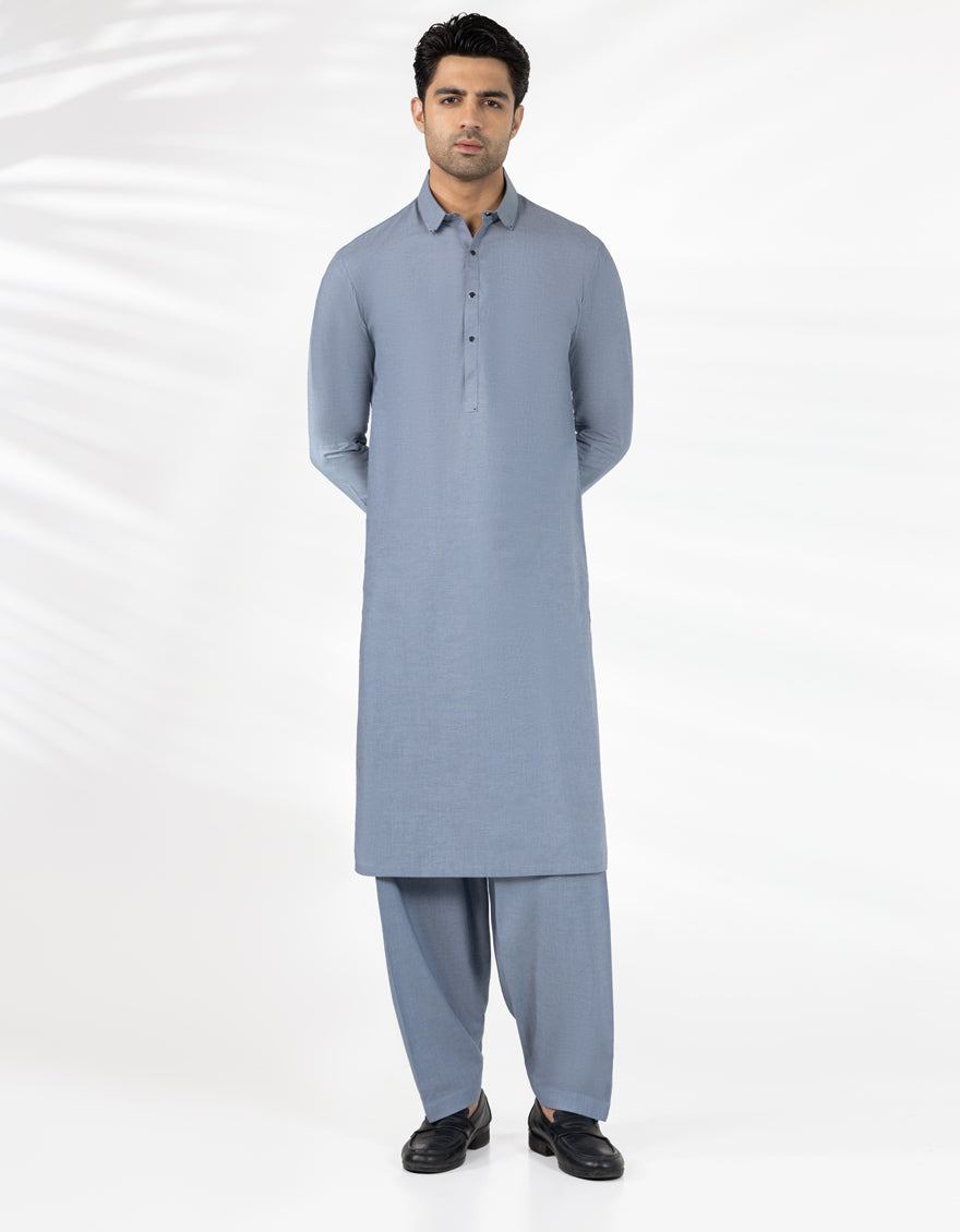 A classic eastern wear set designed with clean stitching and thoughtful detailing. The Light Grey Cotton Casual Kameez Shalwar offers a neat look & comfortable fit - ideal for long wear, daily use, or special occasions with a touch of tradition.
