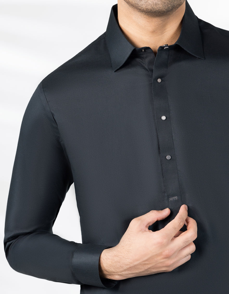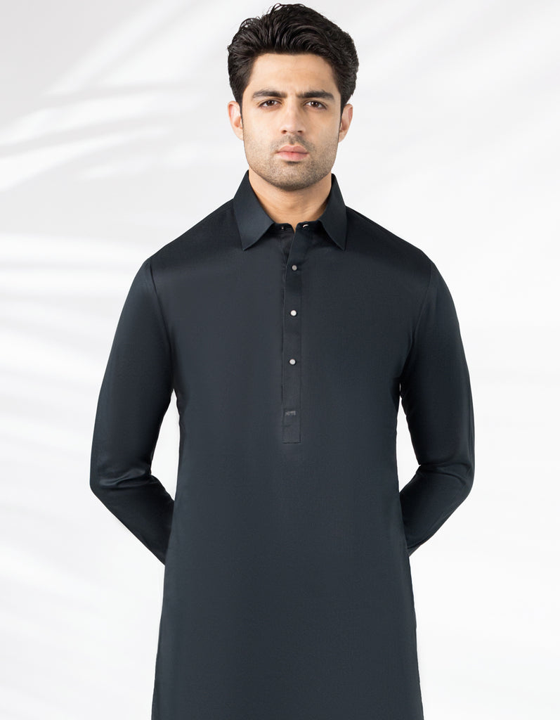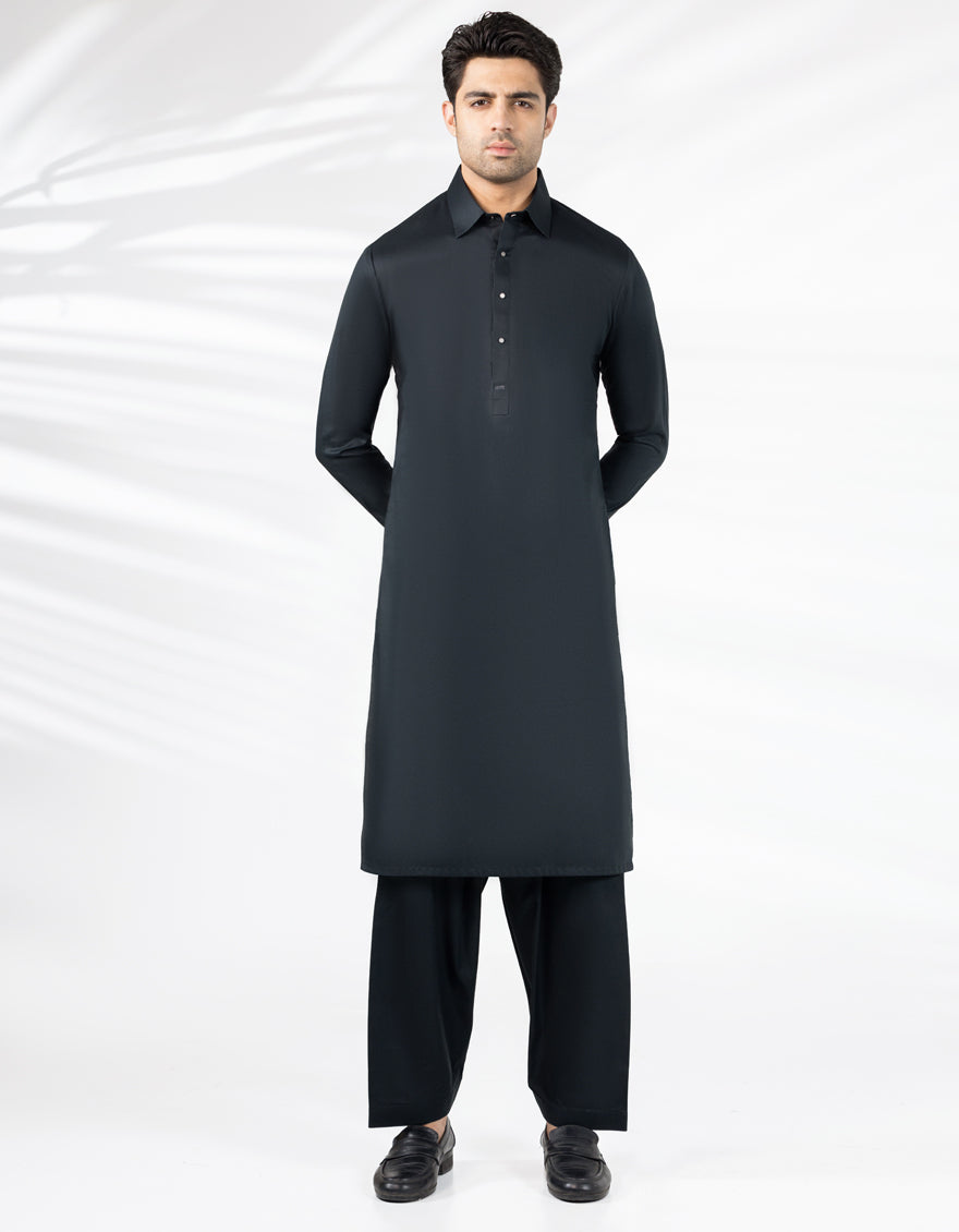 A classic eastern wear set designed with clean stitching and thoughtful detailing. The Black Cotton Casual Kameez Shalwar offers a neat look & comfortable fit - ideal for long wear, daily use, or special occasions with a touch of tradition.
