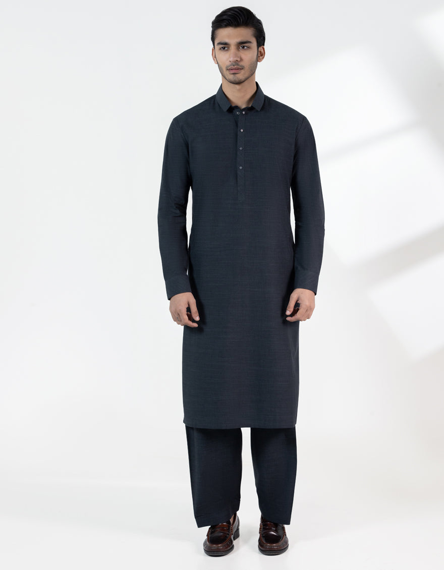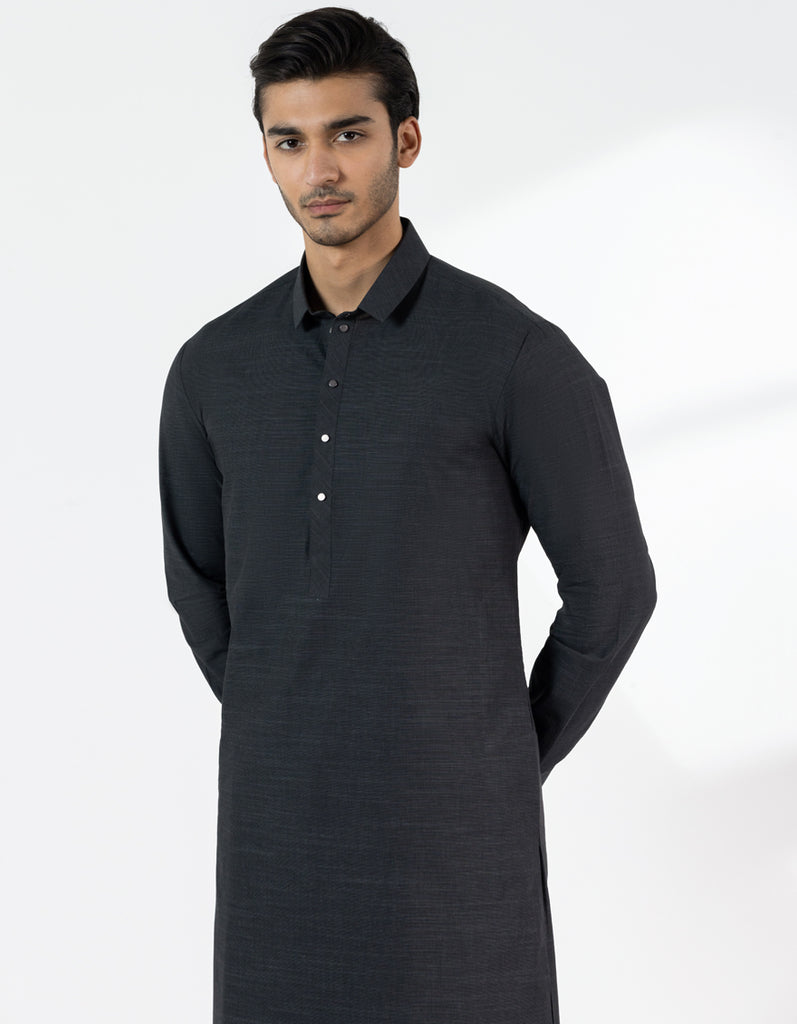 A classic eastern wear set designed with clean stitching and thoughtful detailing. The charcoal cotton casual kameez shalwar offers a neat look & comfortable fit - ideal for long wear, daily use, or special occasions with a touch of tradition.